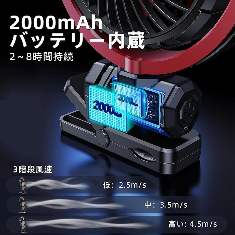 商品名:NIFBANG 車 扇風機 USB充電 2000MAH クリップ/ビス固定 車載扇風機 低騒音 車 角度調節可能 3階段風量調節 強力 5枚羽根 USB車載ファン 車用ファン 取付簡単 省エネ 夏対策 車中泊対策 車内せんぷうき 車せんぷうき 角度調整可能 ク