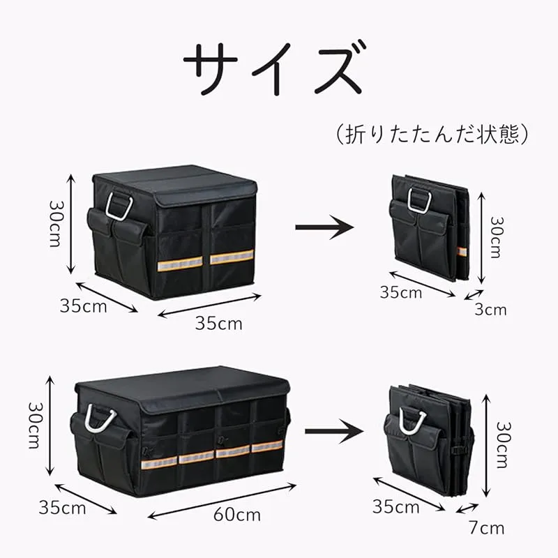 マルチポケット設計で、メンテナンス工具、いざという時の防災用具や車中泊用品などの収納、整理整頓にもご利用いただけます。