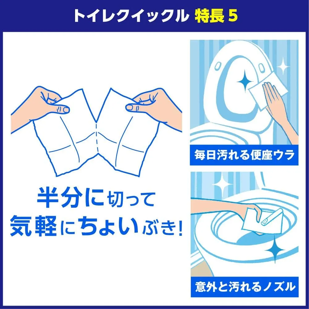 【簡単な使用方法】シートを取り出してサッと拭くだけで、手軽にトイレ掃除が完了します。忙しい日常でも、短時間で清潔なトイレを保つことができます。