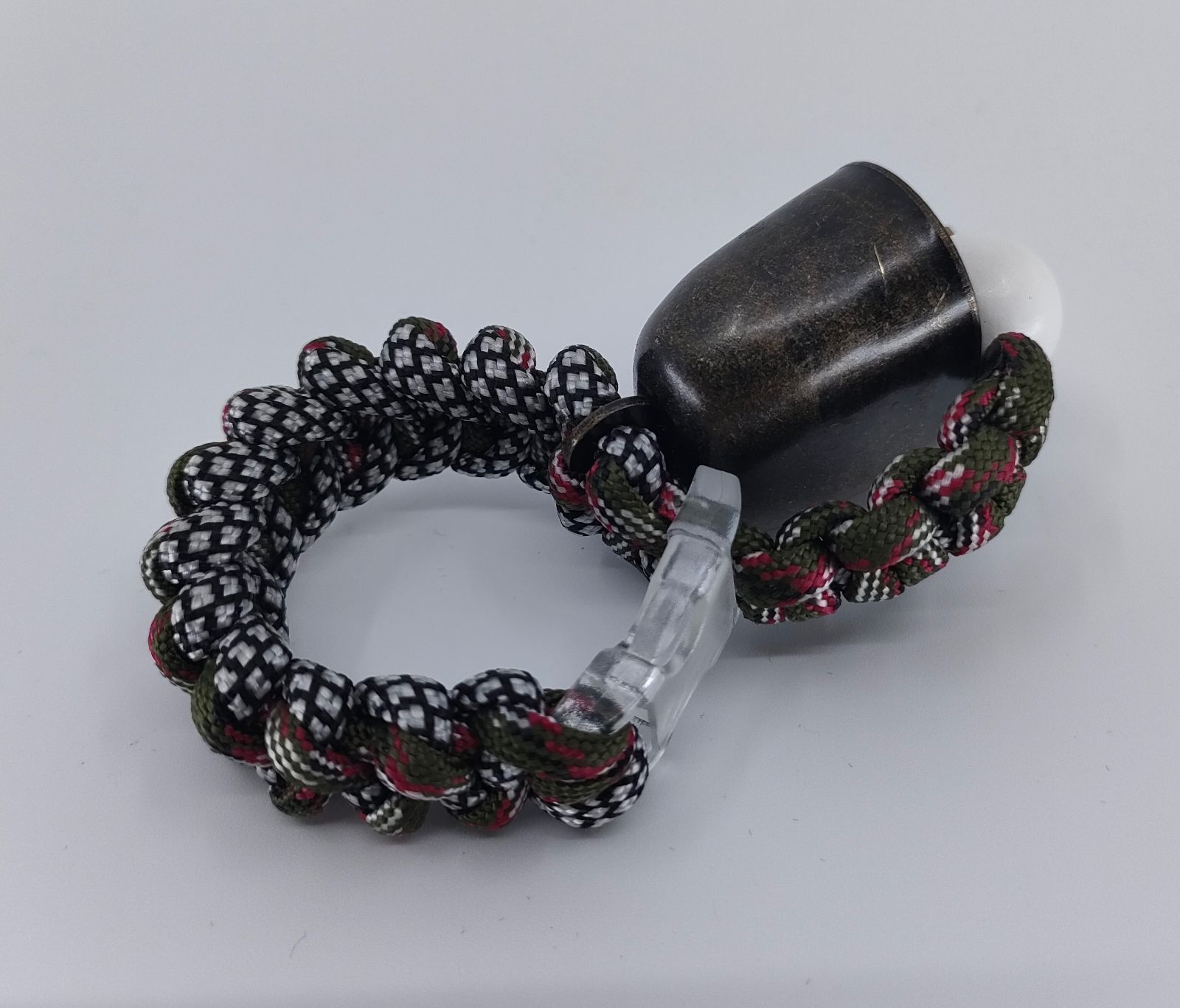消音はウッドビーズをベルの中に入れ込むことで、強力なネオジム磁石が吊り鐘に吸い付いて行われます。クリック感があり手元を見ずにオン・オフをしっかり切り替えることが可能です。薄手ならグローブをしたままでもクリック感を感じらると思います。