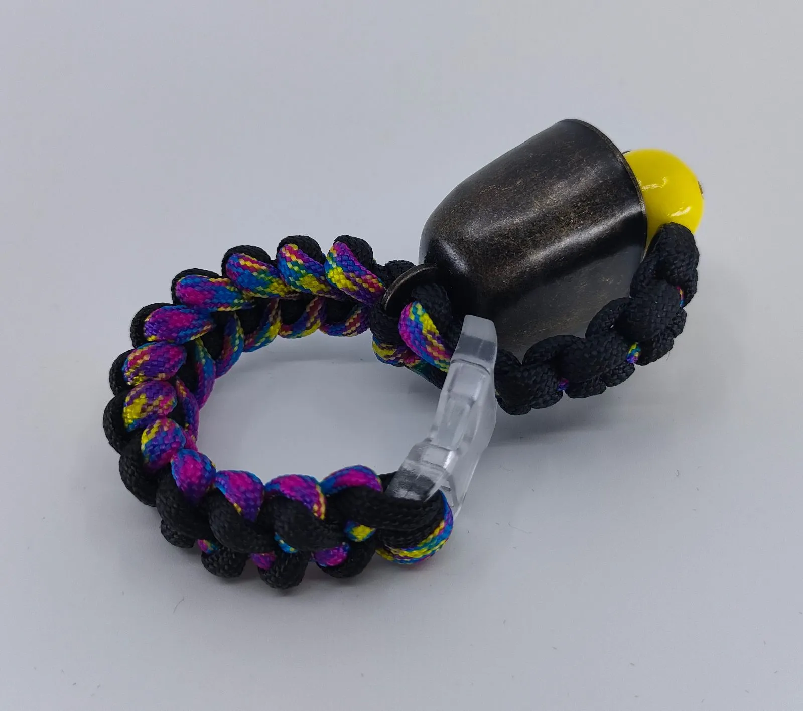 消音はウッドビーズをベルの中に入れ込むことで、強力なネオジム磁石が吊り鐘に吸い付いて行われます。クリック感があり手元を見ずにオン・オフをしっかり切り替えることが可能です。薄手ならグローブをしたままでもクリック感を感じらると思います。