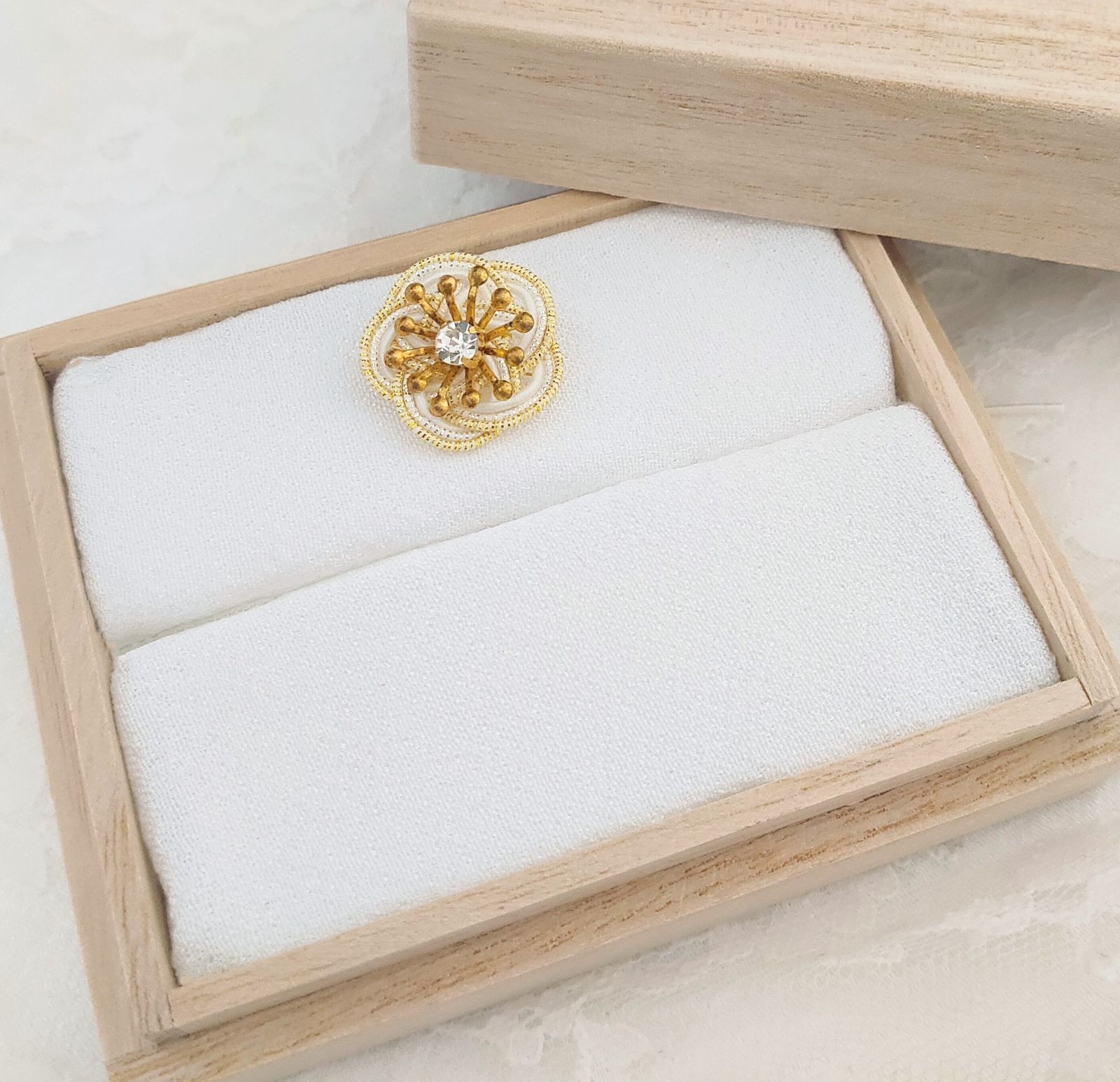 縁起の良い梅結び の水引きを飾った和風の桐箱リングピローです。