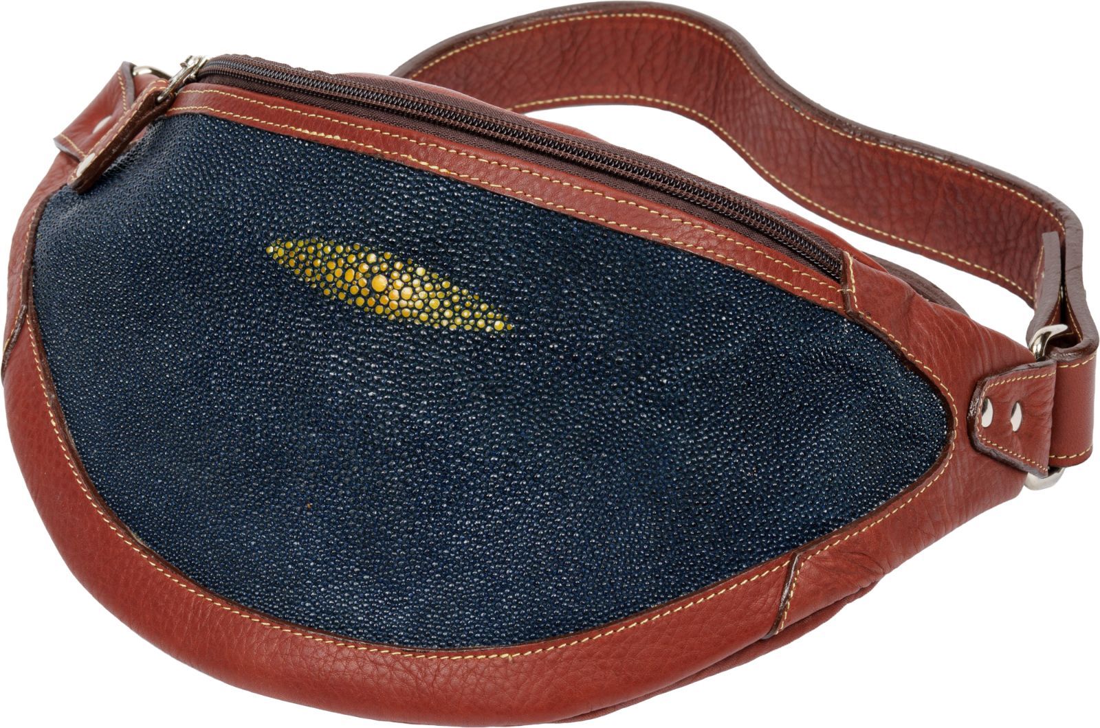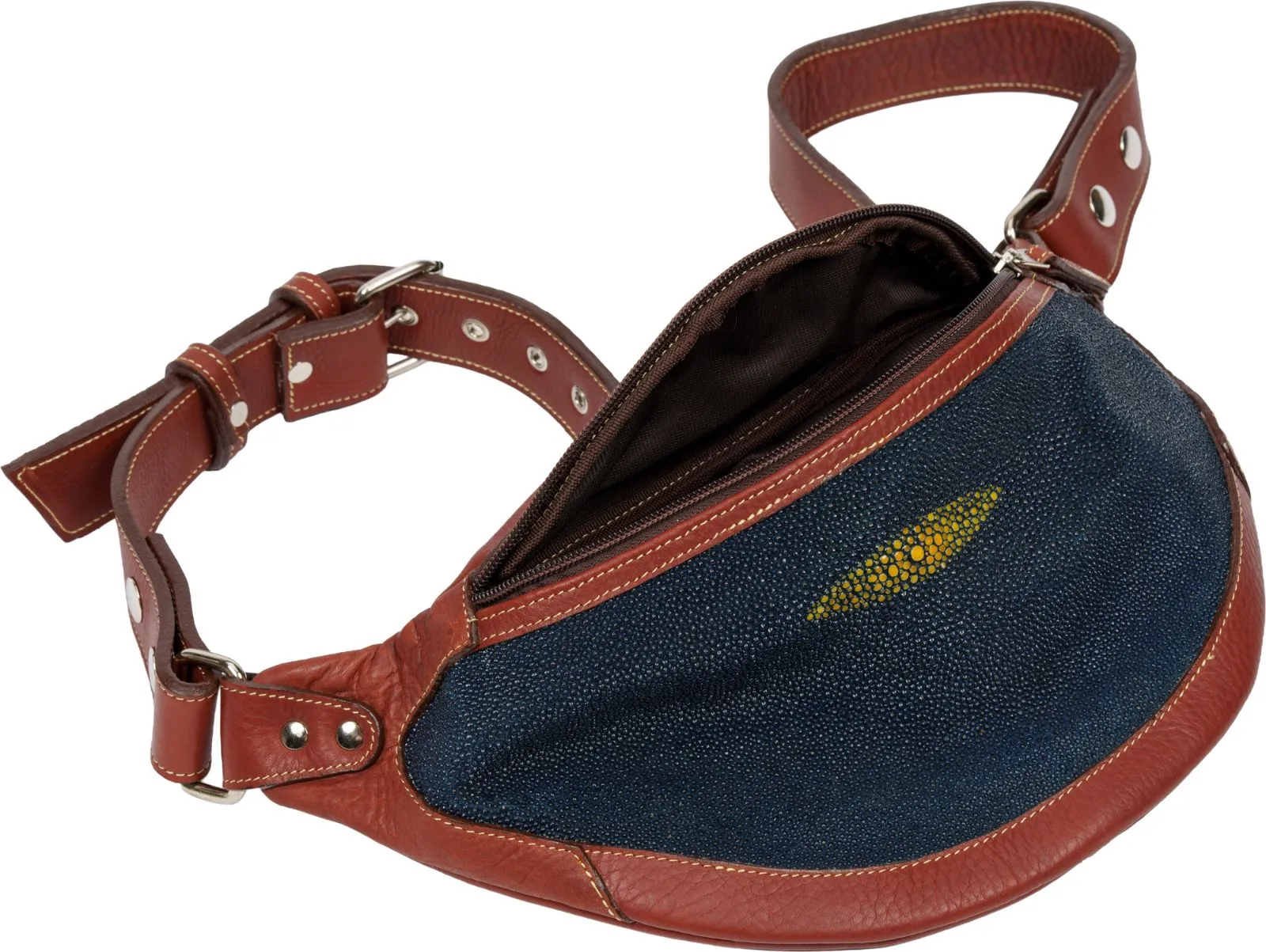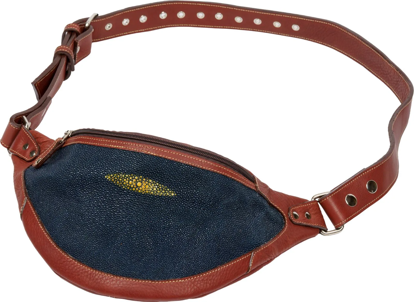 「革バッグスティングレーコンビ」は、希少性と耐久性を誇るエイ革(スティングレー)と、上質な牛革を組み合わせて仕立てた、存在感あるバイカーズパックです。ウエストバッグとしても、ボディバッグとしても使用できる設計で、走る時間にも、日常の移動にも寄り添います。