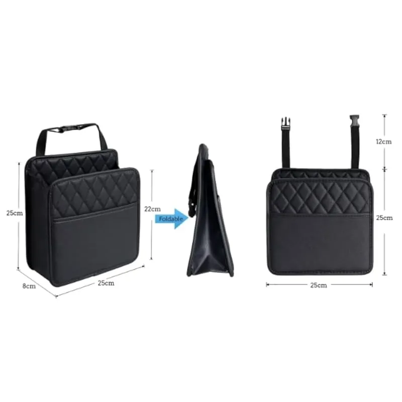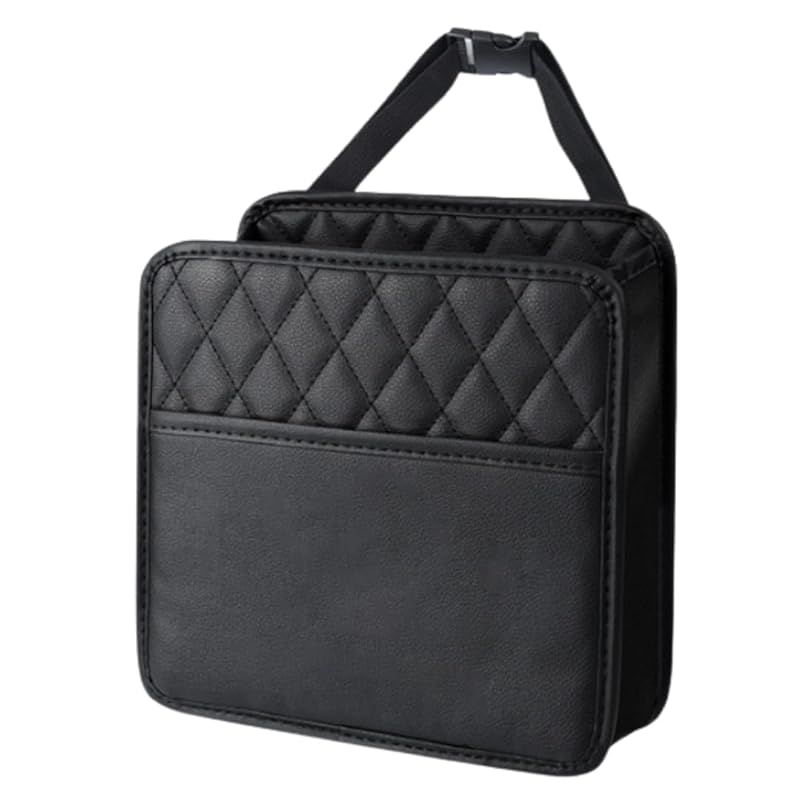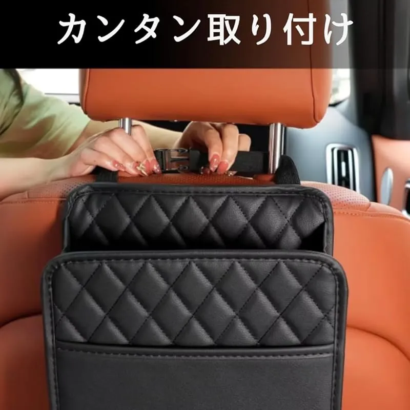 高品質デザイン: キルティング加工を施した高級感のある車用収納ポケット、耐久性と美しさを兼ね備えたブラックカラー