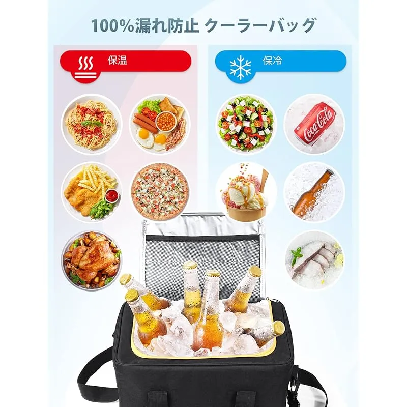 保冷保温:付属のクーラーバッグが漏れ防止、取り外しも可能。数時間の保冷または保温ができ、ピクニック、キャンプ、アウトドア旅行などに適しています。飲料、冷凍食品、弁当など、季節を問わず、全部適用します。