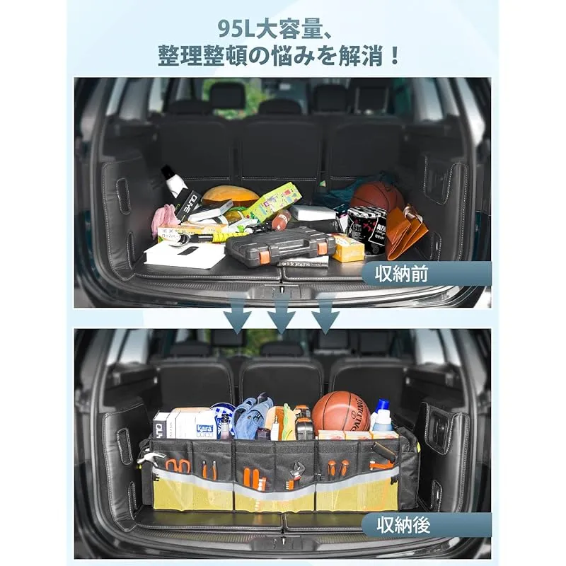 大容量収納:トランクボックスは95Lの収納容量を持ち、タオル、工具、その他の様々な車用品を簡単に収納し、トランクを整理整頓した状態にします。