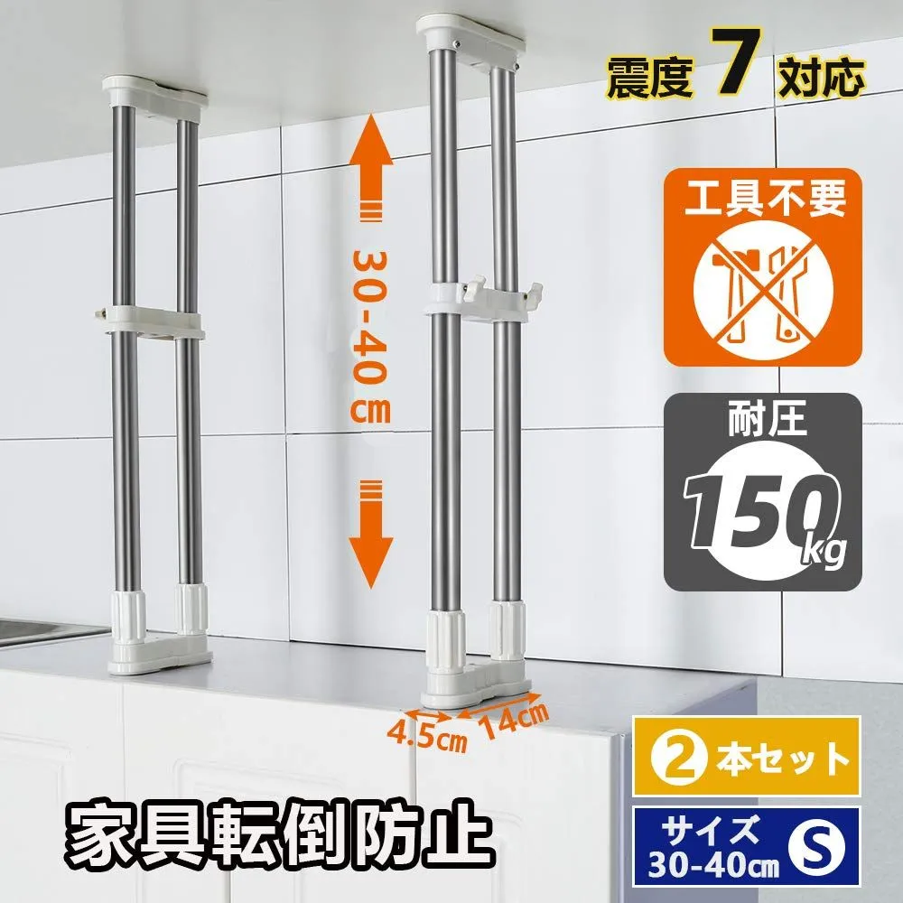 DAF 転倒防止用 つっぱり棒 転倒防止 突っ張り棒 地震 耐震対策 つっぱりポール 強力 地震対策 防災グッズ 家具転倒防止棒 食器棚 冷蔵庫 家具 2本セット (取り付け範囲:30-40cm)
