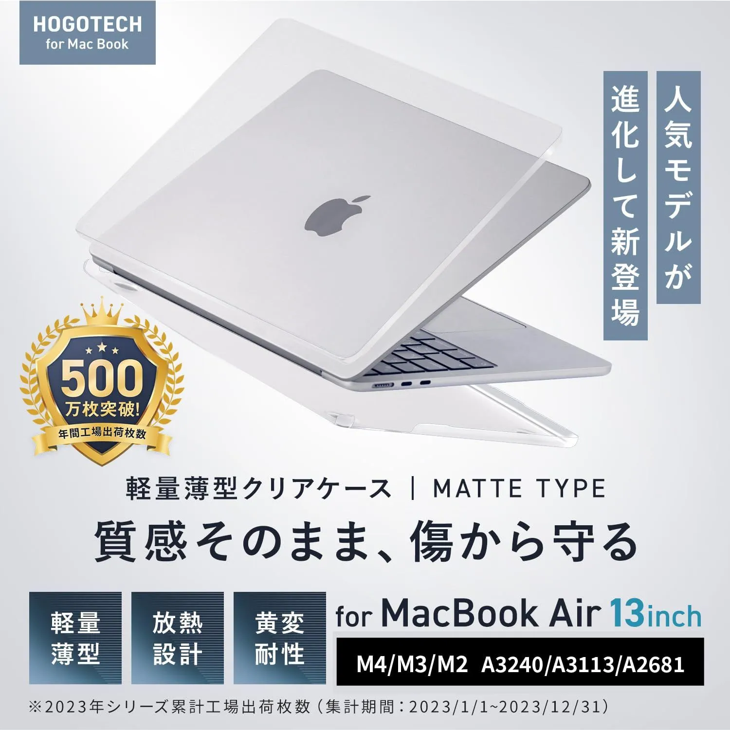 【質感そのまま、傷を守る】MacBook Air 13.6インチ M3 / M2 ケース 2024 2022 カバー クリアマットカバー A3240 A3113 A2681 HOGOTECH