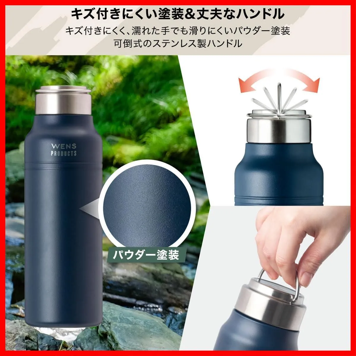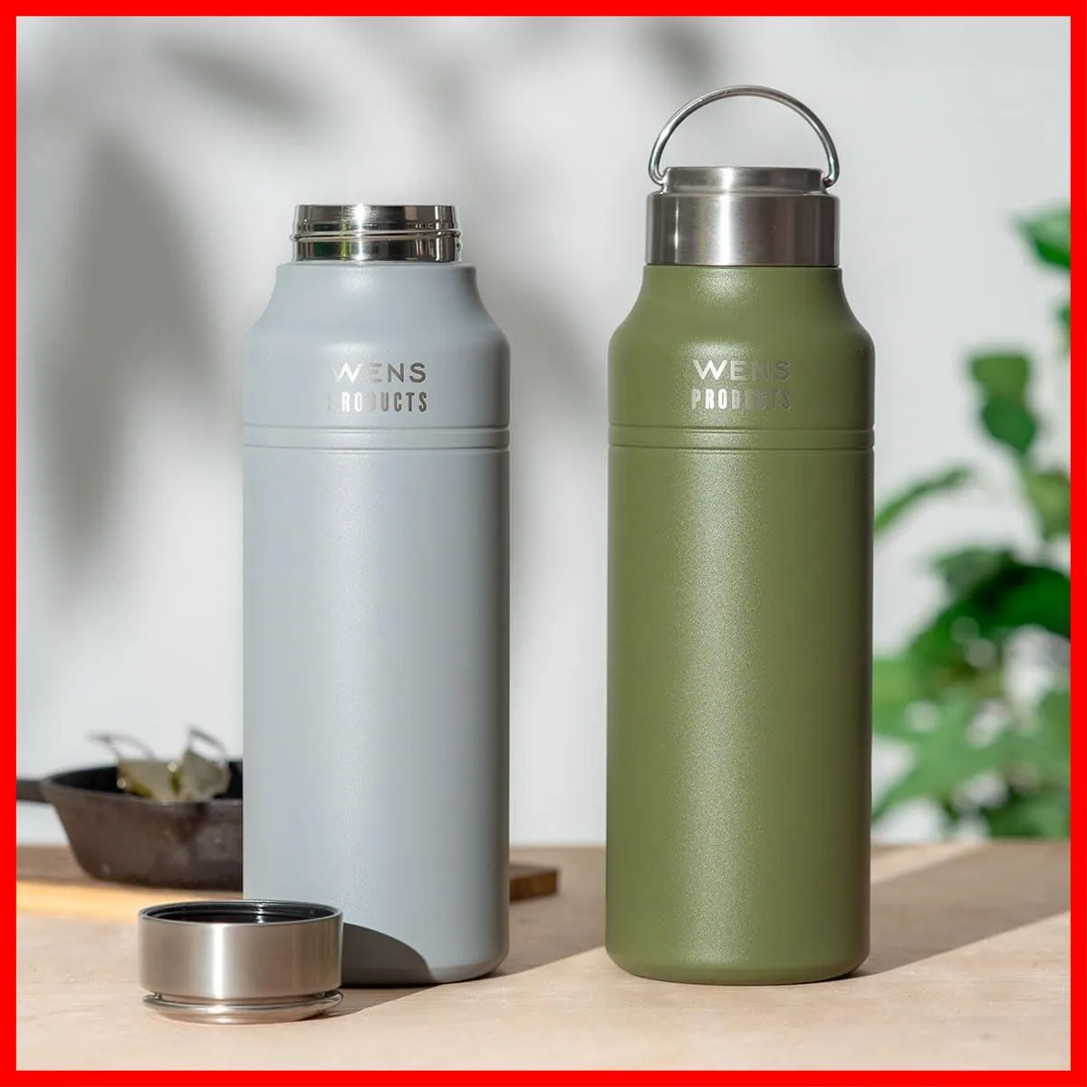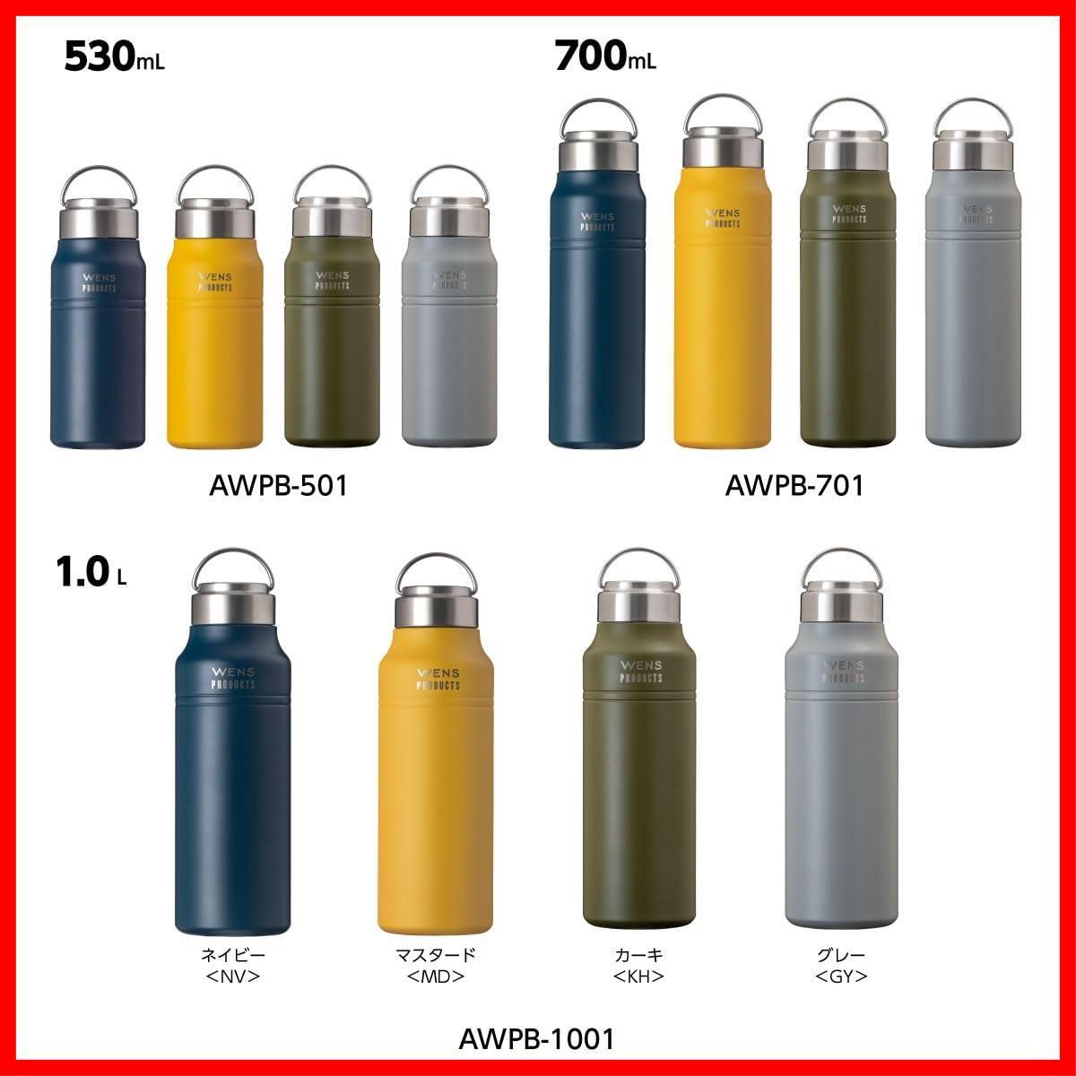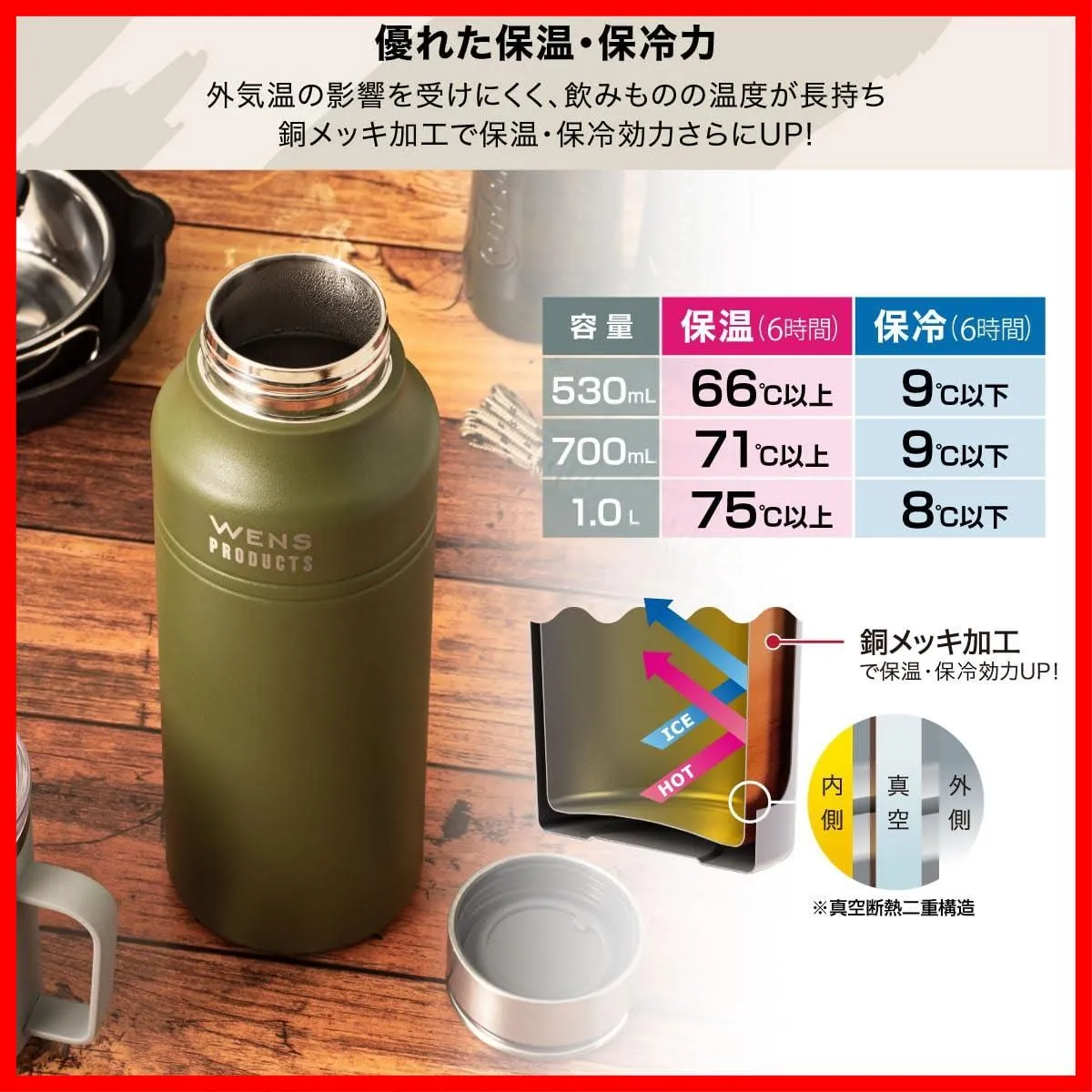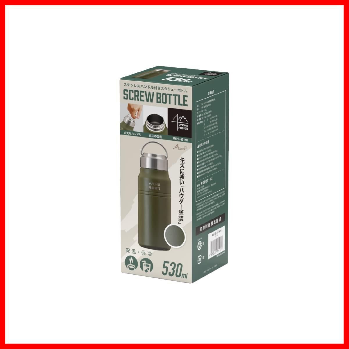 アトラス 水筒 500ml 保冷 保温 真空断熱 ステンレス マグボトル 軽量 直飲み 洗いやすい アウトドア WENS ウェンズ 530ml カーキ 白湯 AWPB-501KH