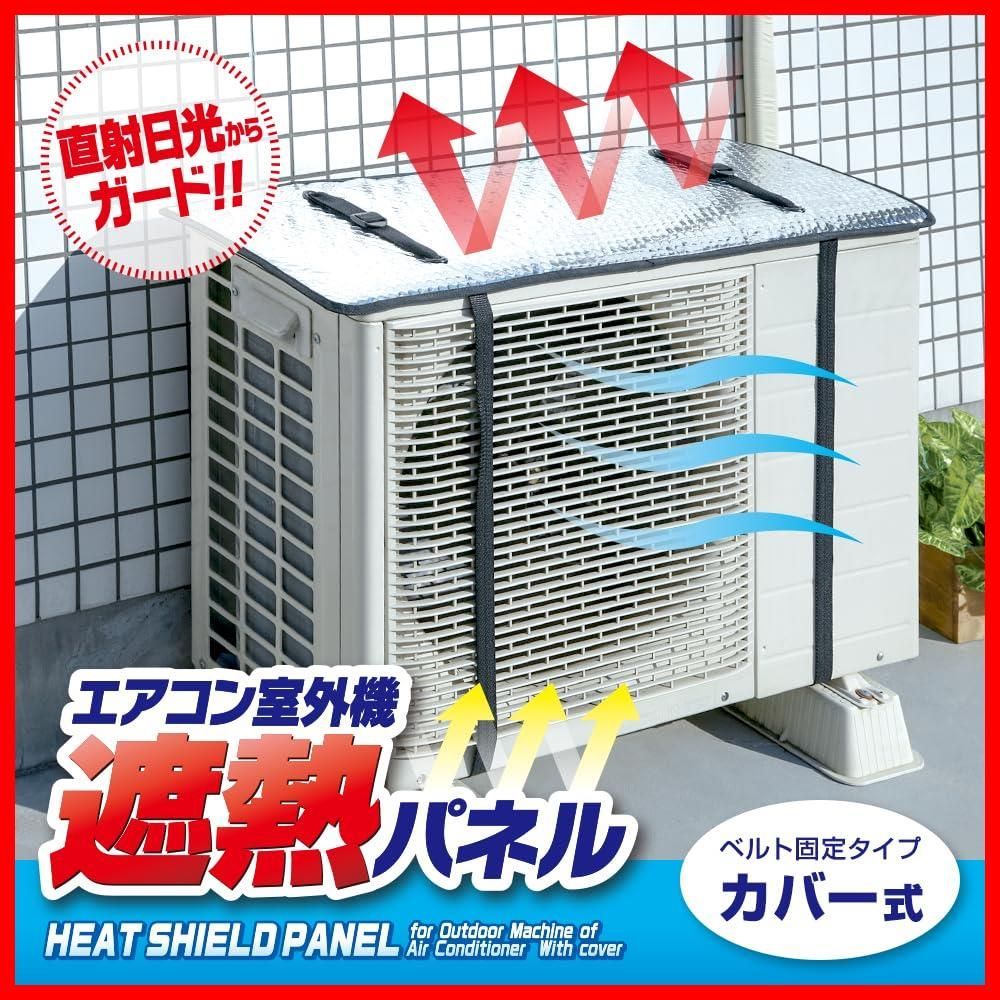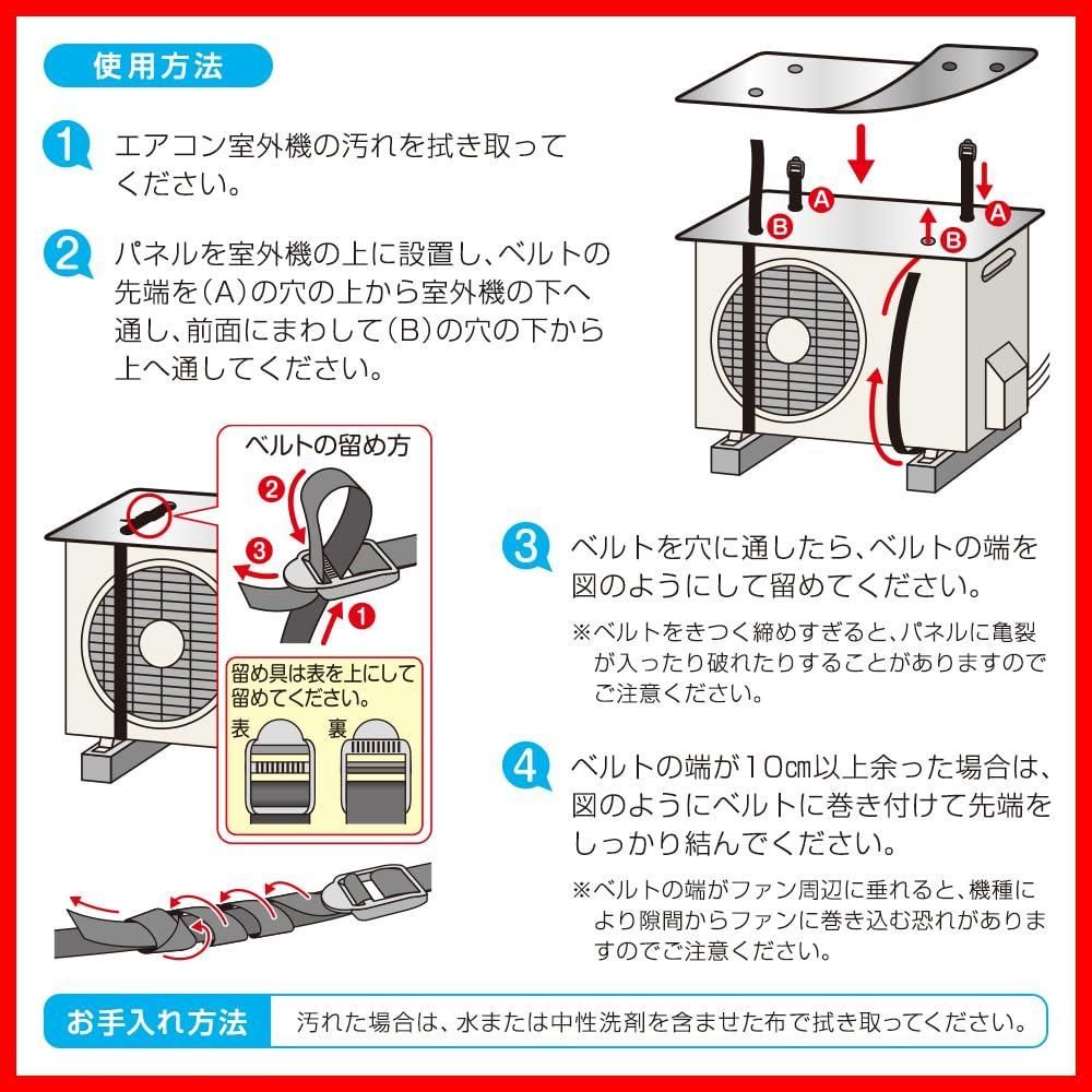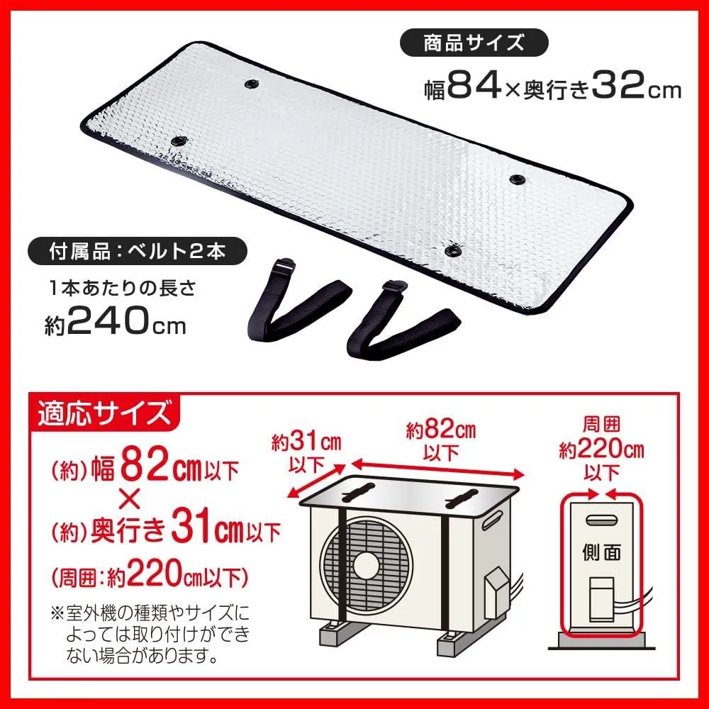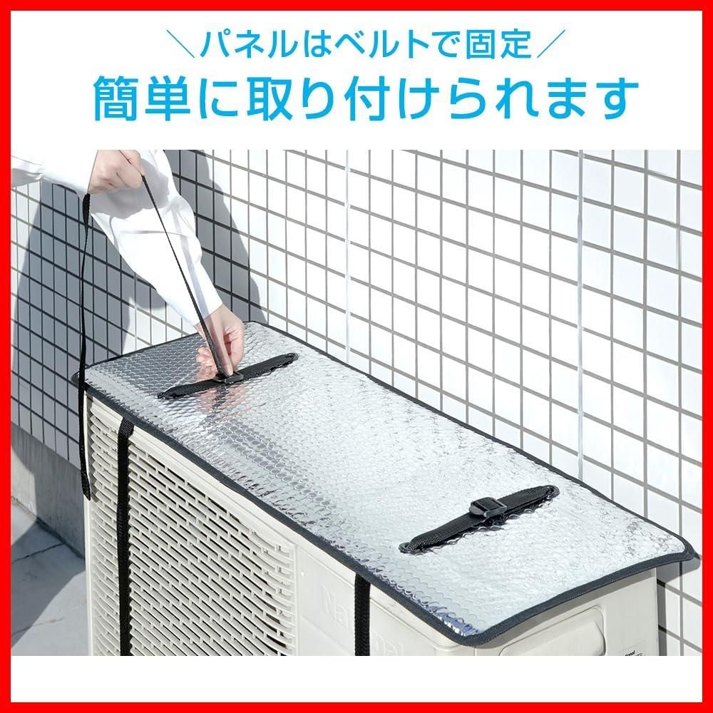 直射日光からガード! 遮熱パネルがエアコン室外機の直射日光を遮り、熱から守ります。エアコン室外機の負担を軽減し、効率をアップ! ベルトで固定し、取り付け簡単です。