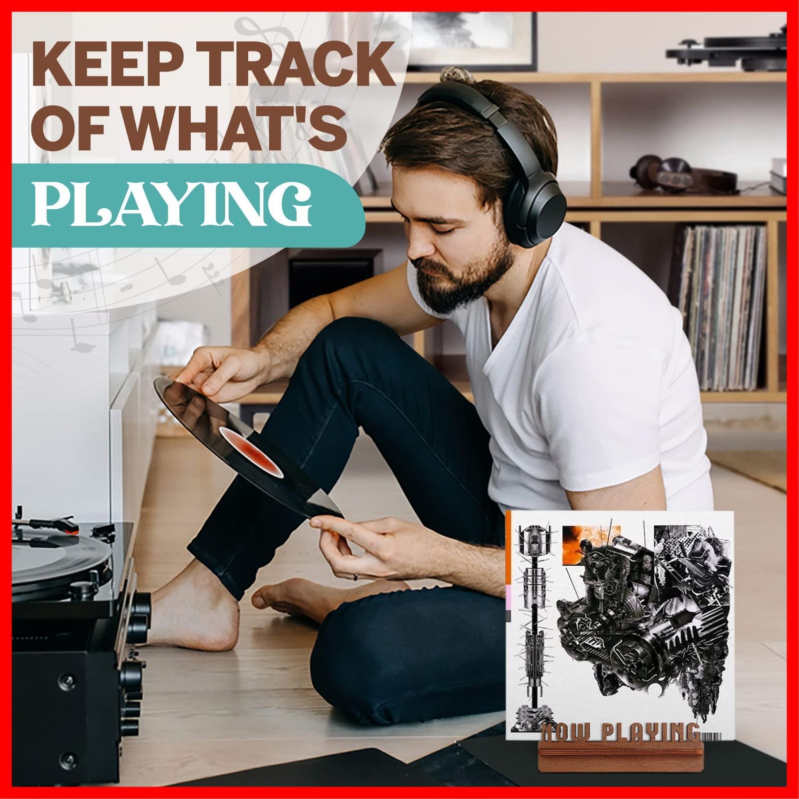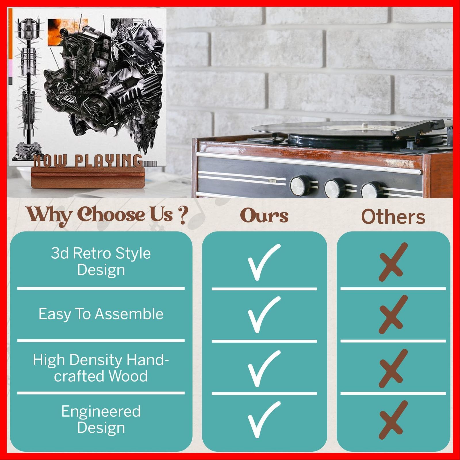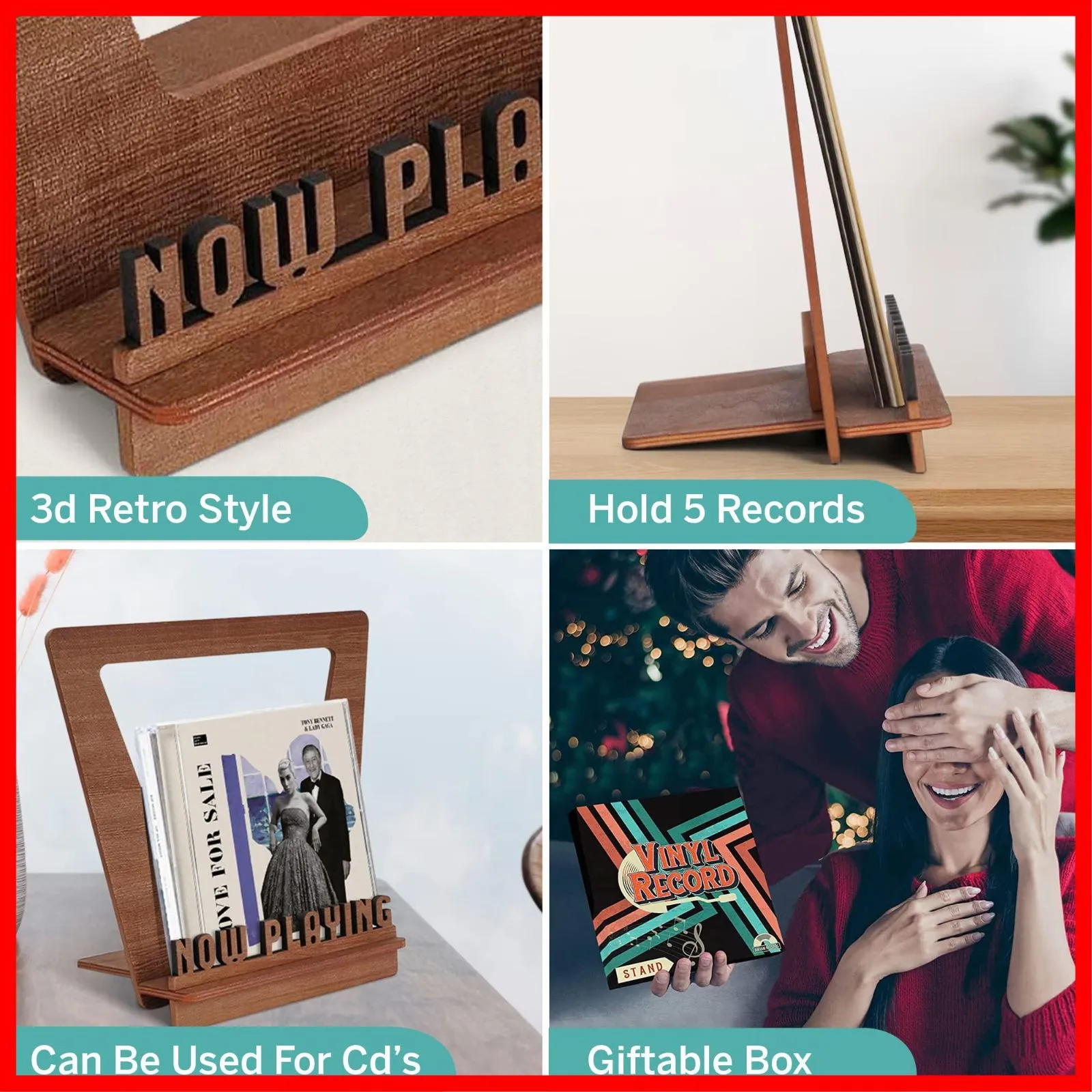 Now Playing Vinyl Stand - LPビニールレコード用3Dレトロホルダー - 木製ターンテーブルアクセサリー - ギフトアイデア - アルバムディスプレイスタンド