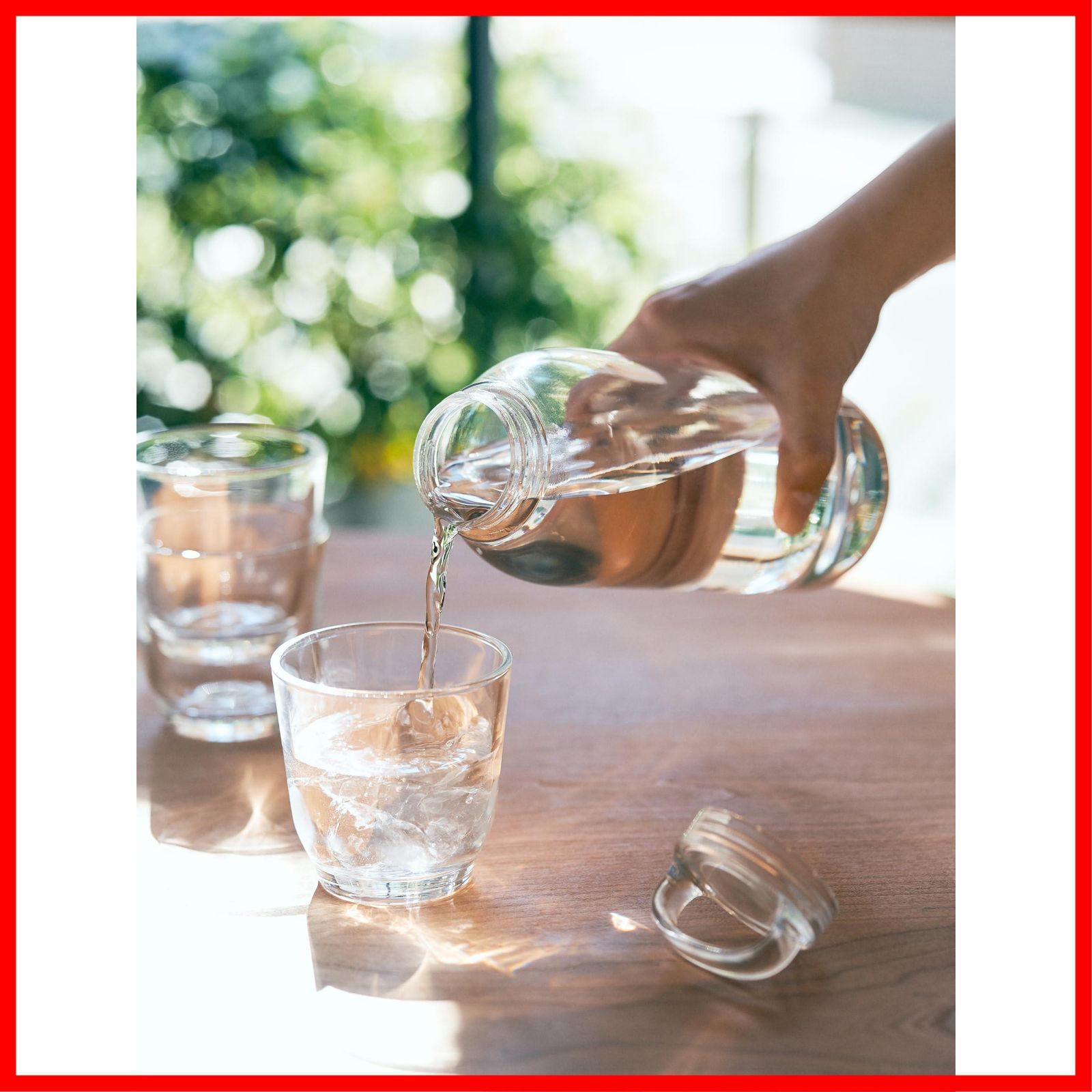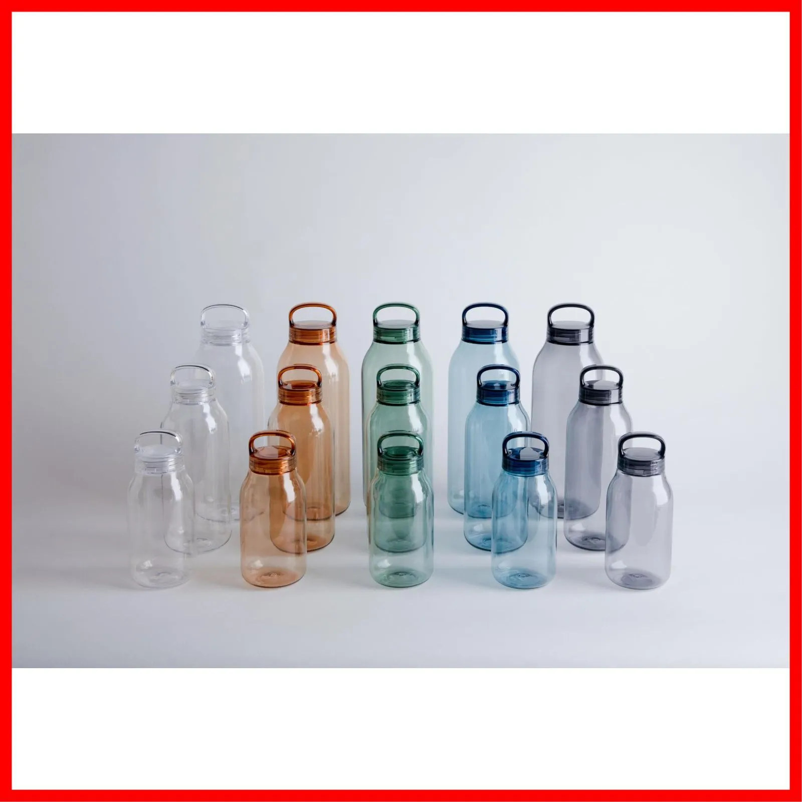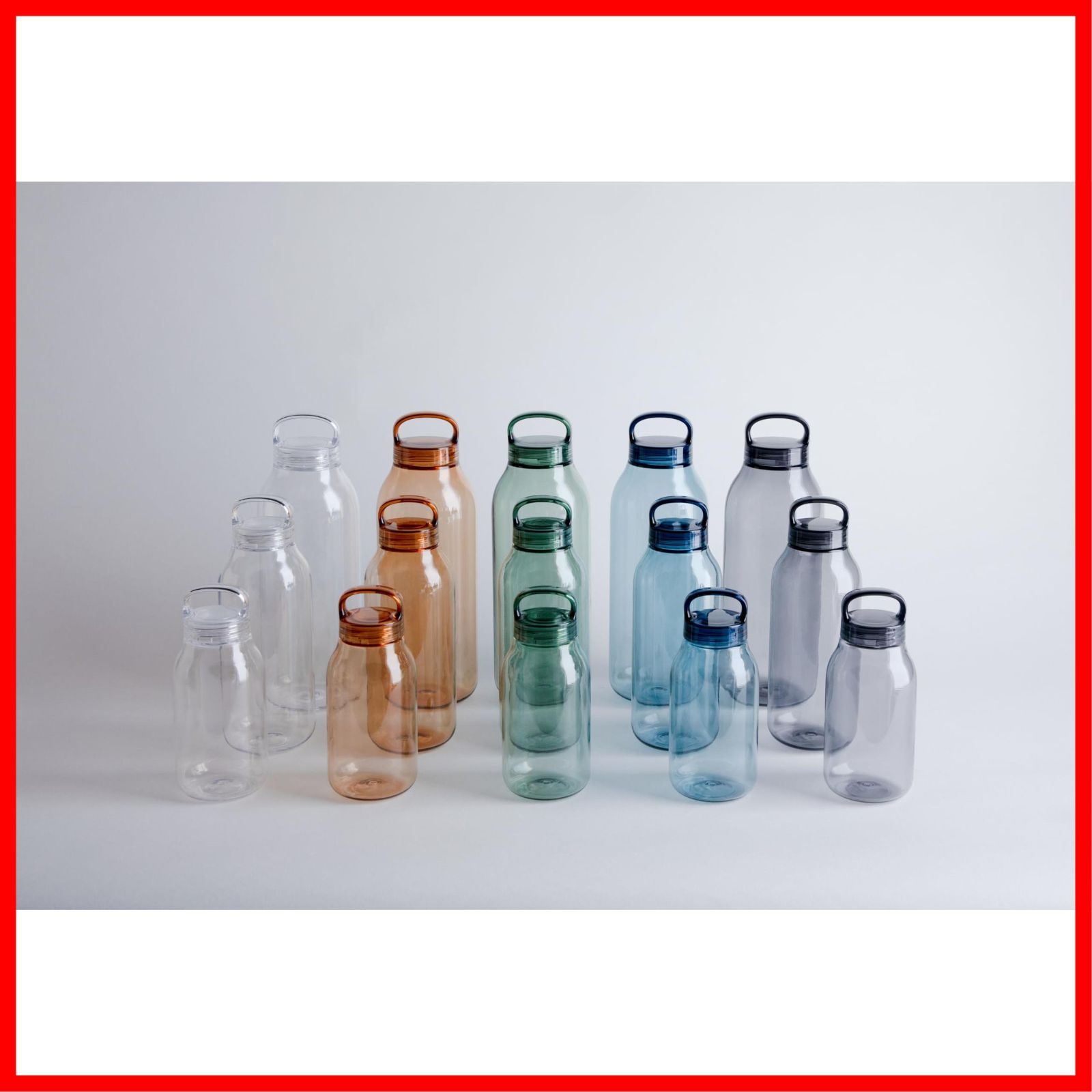 毎日の水分補給をサポートする軽量でコンパクトなWATER BOTTLE。日常使いに適した、傷がつきにくく割れにくい高品質な樹脂素材を採用しました。1回転で簡単に開け閉めできる蓋は、手にフィットして持ちやすいハンドル付きで、気軽に持ち歩けるデザインです。水を入れることで素材の透明感やフォルムの美しさがより際立ちます。