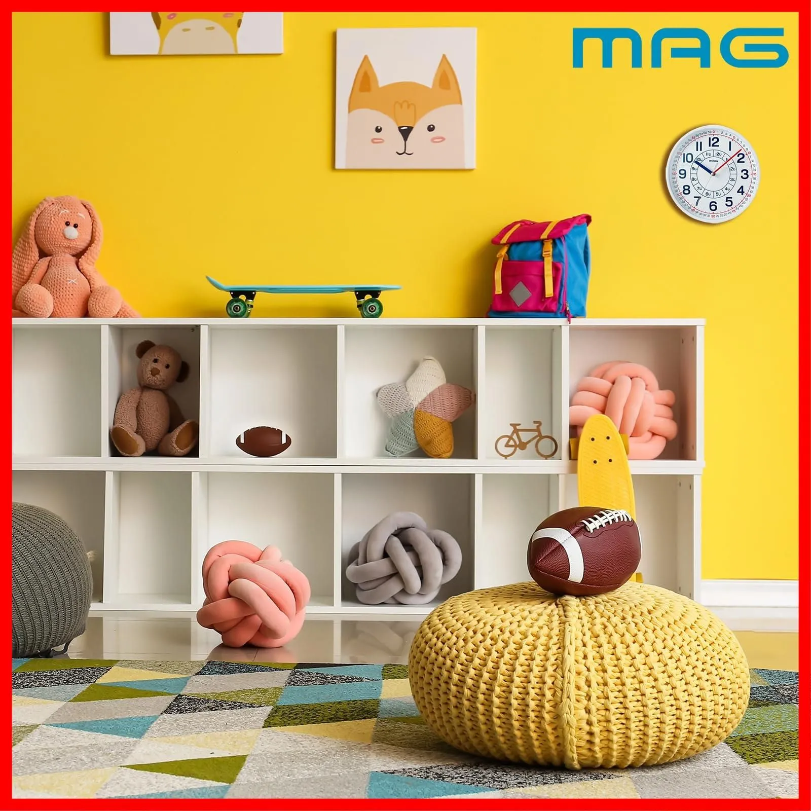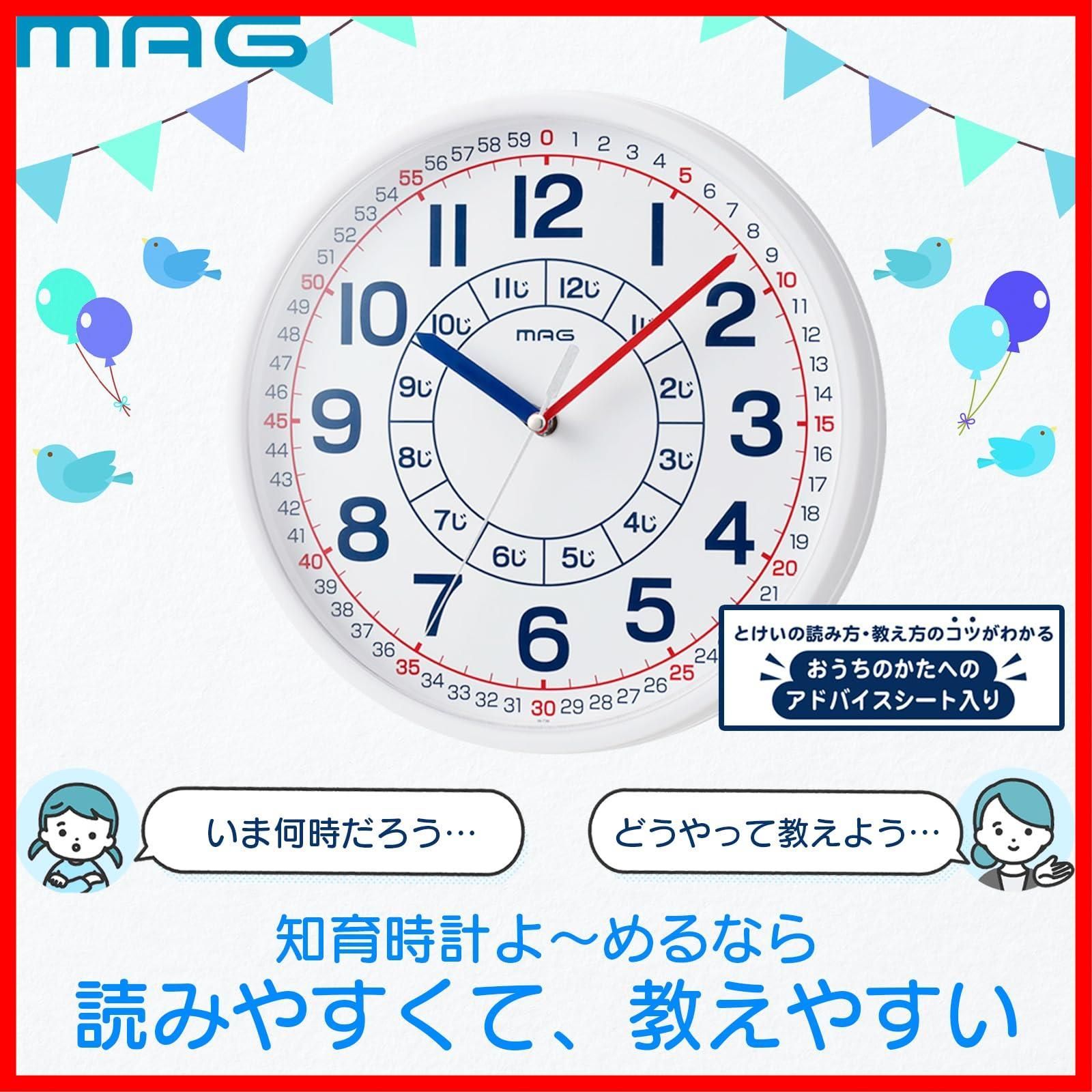 MAG(マグ) 掛け時計 壁掛け時計 アナログ 知育 子供 学習 幼稚園 保育園 小学校 幼児 小学生 アドバイスシート プラスチック 軽量 安全 直径28.0㎝ ホワイト W-736 WH-Z ノア精密