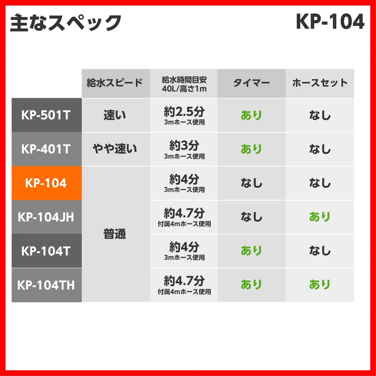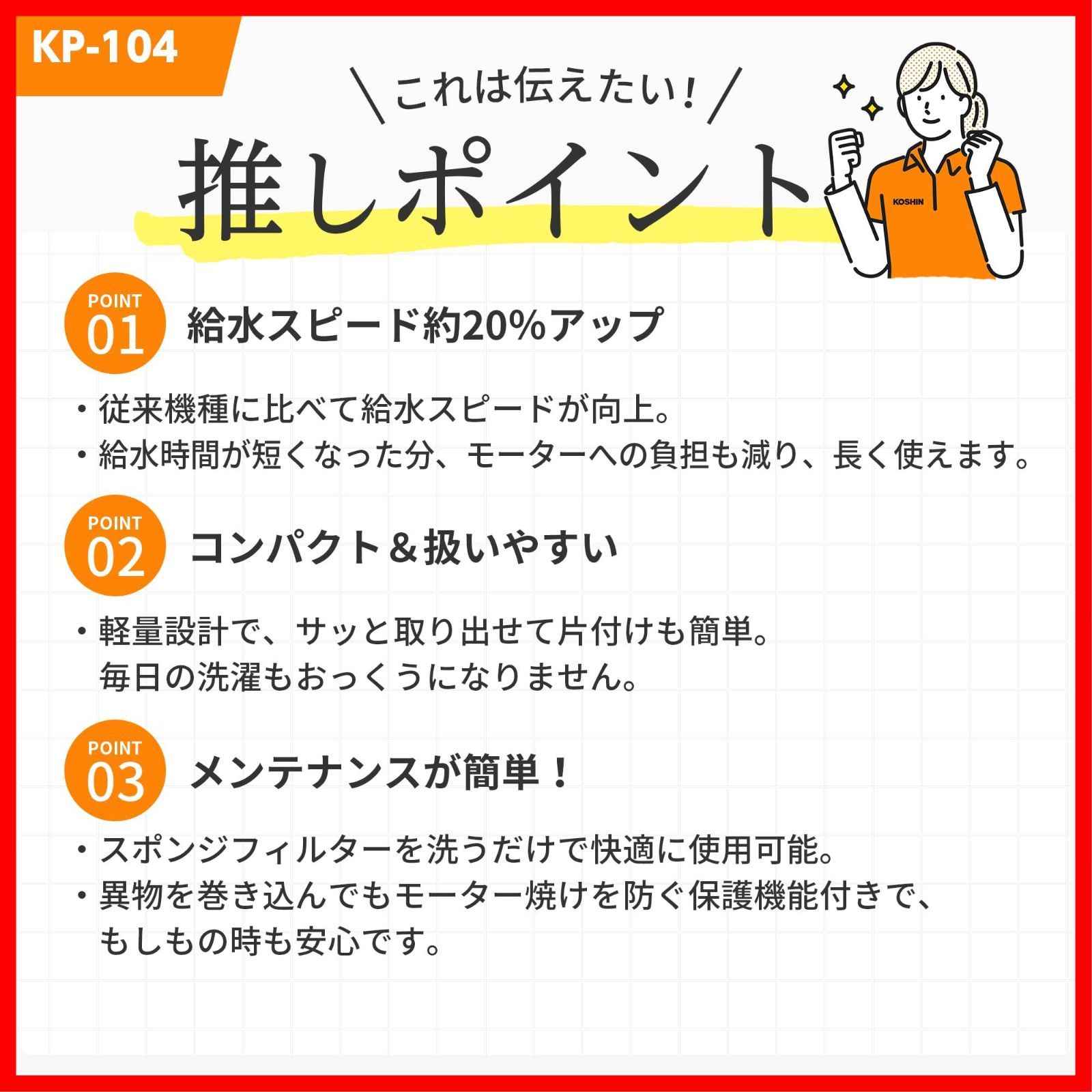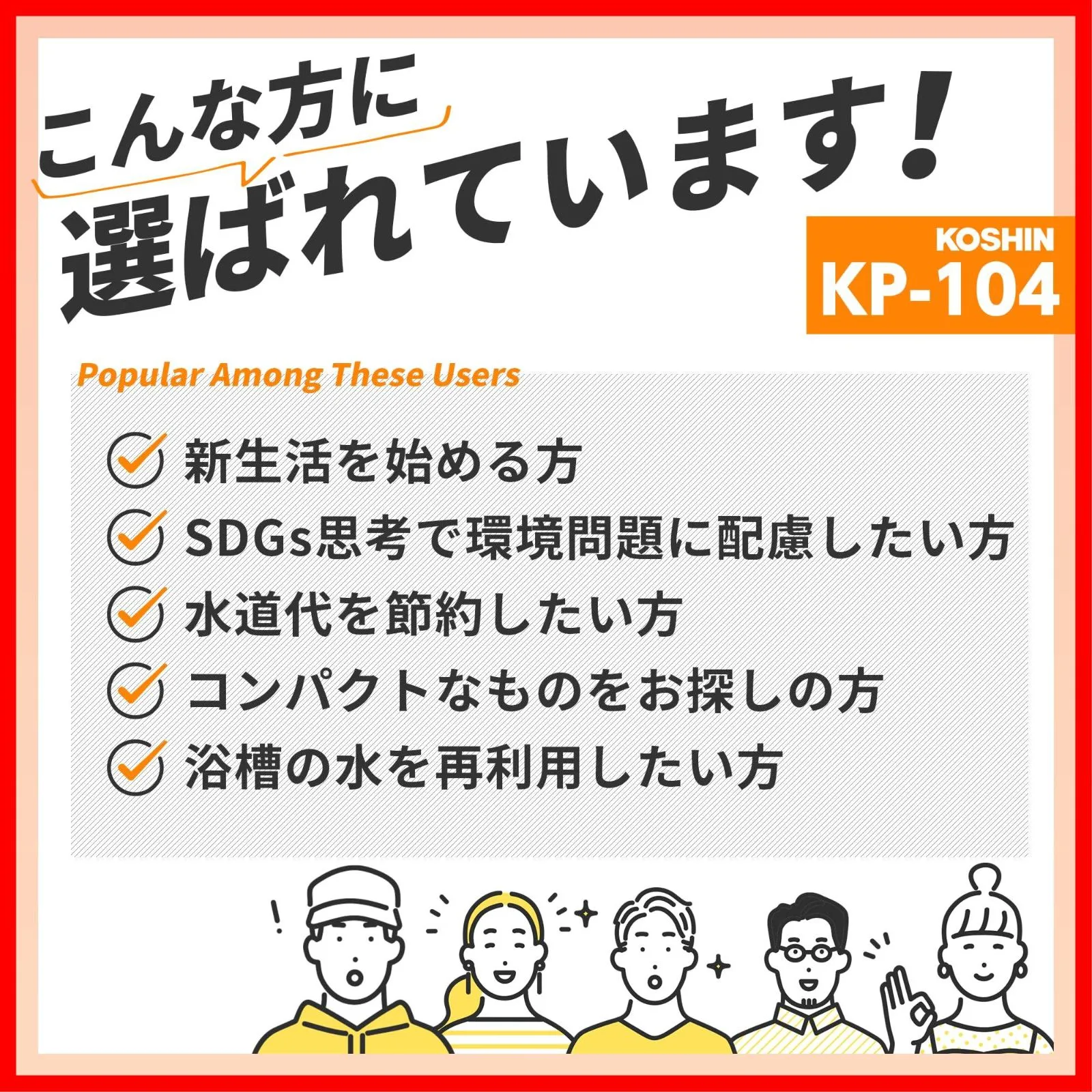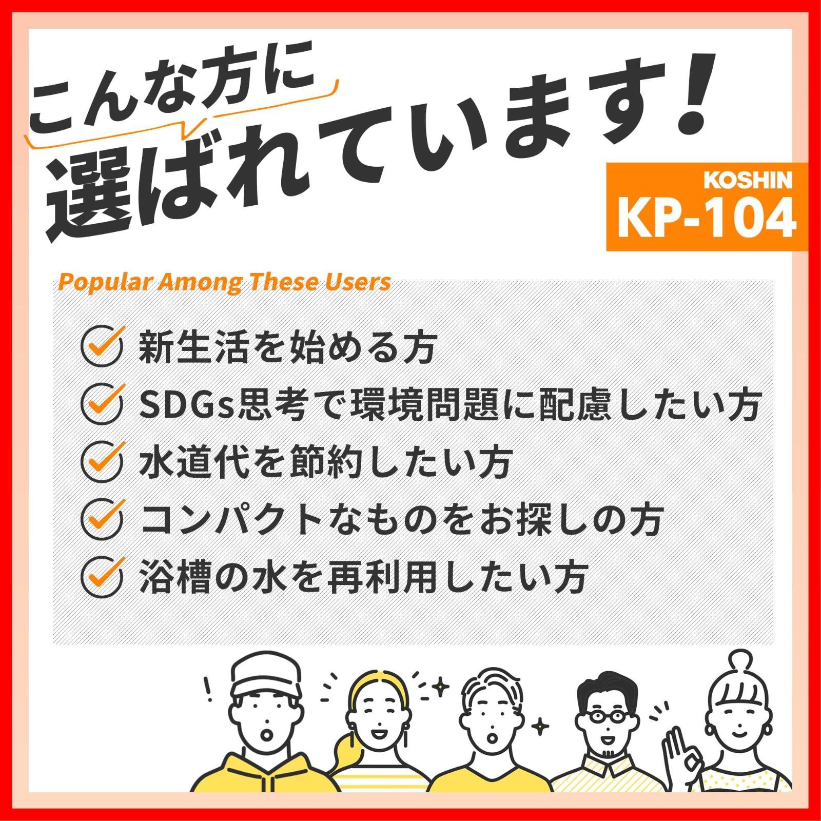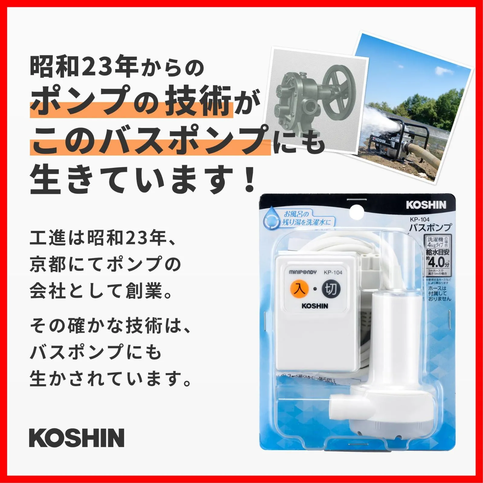 工進(KOSHIN) 家庭用バスポンプ AC-100V KP-104 風呂 残り湯 洗濯機 最大吐出量 14L/分 (3mホース時) 水道 ホース 内径 15mm 使用可能