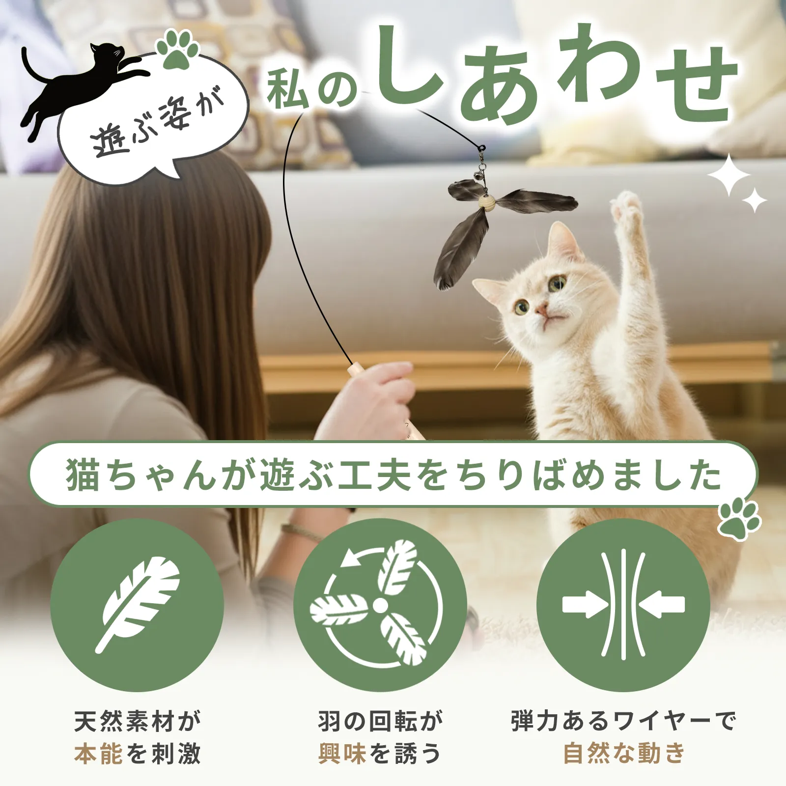 猫じゃらし 【猫専用ホテル発】 替え羽付き 天然羽使用 ねこじゃらし ねこ おもちゃ 猫のおもちゃ 猫用おもちゃ 玩具