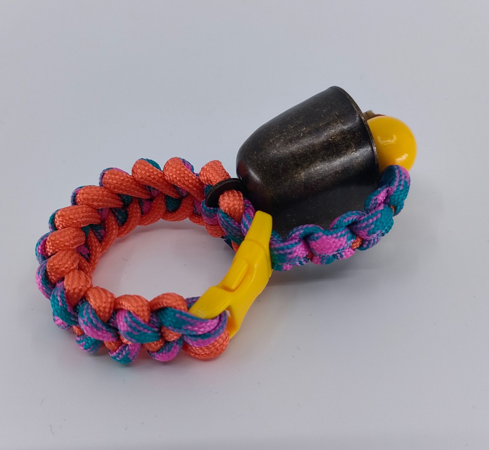 消音はウッドビーズをベルの中に入れ込むことで、強力なネオジム磁石が吊り鐘に吸い付いて行われます。クリック感があり手元を見ずにオン・オフをしっかり切り替えることが可能です。薄手ならグローブをしたままでもクリック感を感じらると思います。