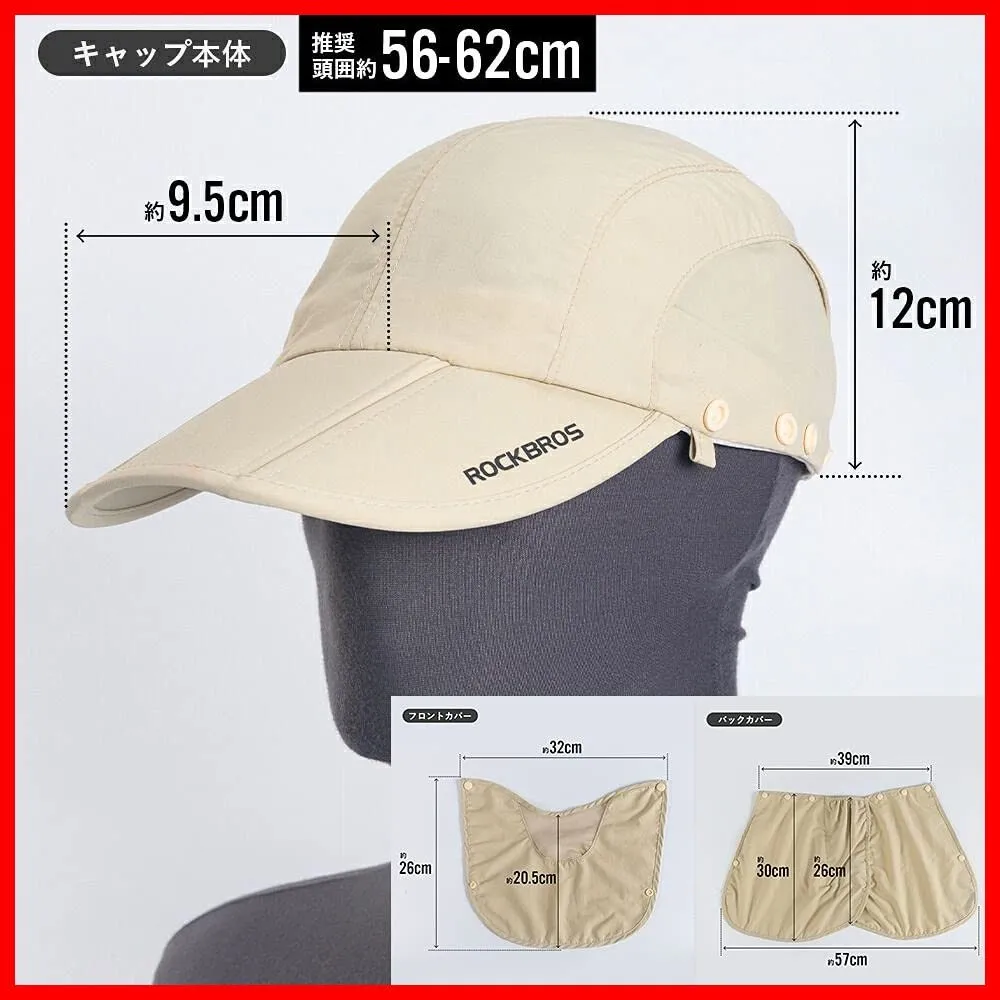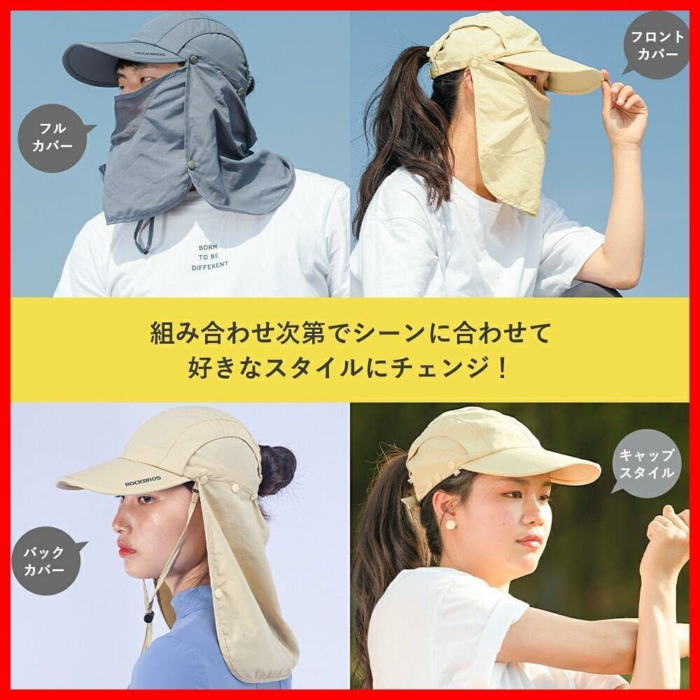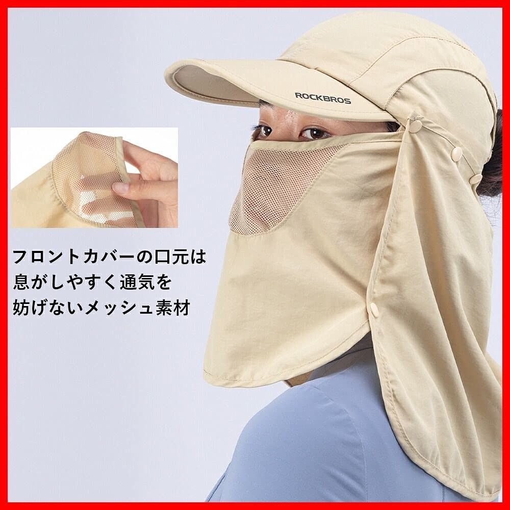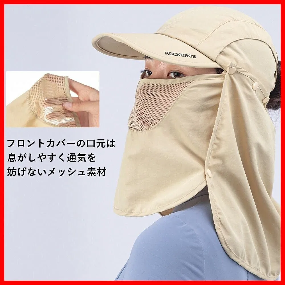 ROCKBROS(ロックブロス) 日よけ帽子 キャップ フェースカバー 帽子 フィッシング・農作業・キャンプ・アウトドア 紫外線対策 UVカット 4WAY 撥水 メッシュ素材 通気性 折りたたみ あご紐付き 男女兼用 コンパクト メンズ レディース
