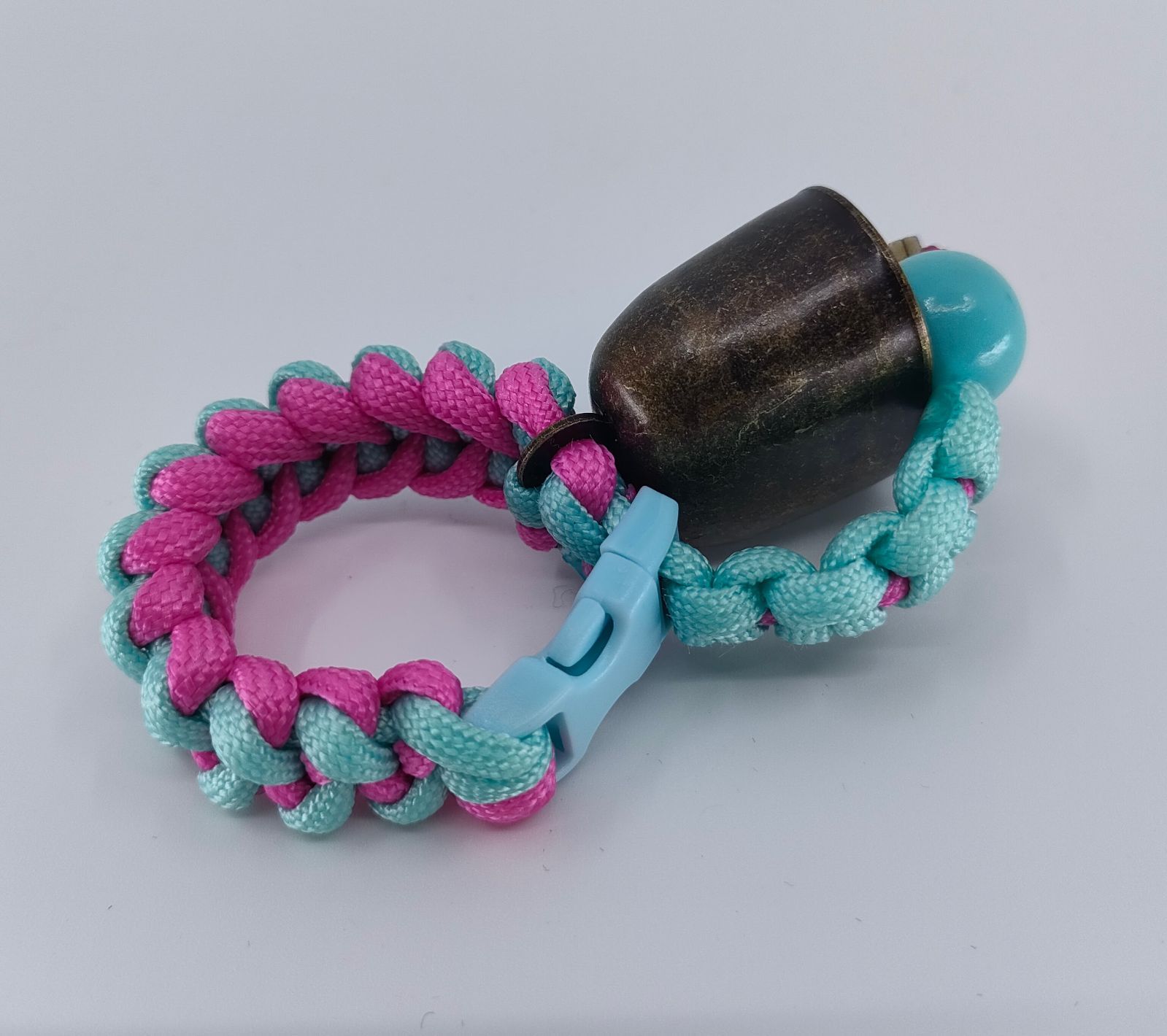 消音はウッドビーズをベルの中に入れ込むことで、強力なネオジム磁石が吊り鐘に吸い付いて行われます。クリック感があり手元を見ずにオン・オフをしっかり切り替えることが可能です。薄手ならグローブをしたままでもクリック感を感じらると思います。