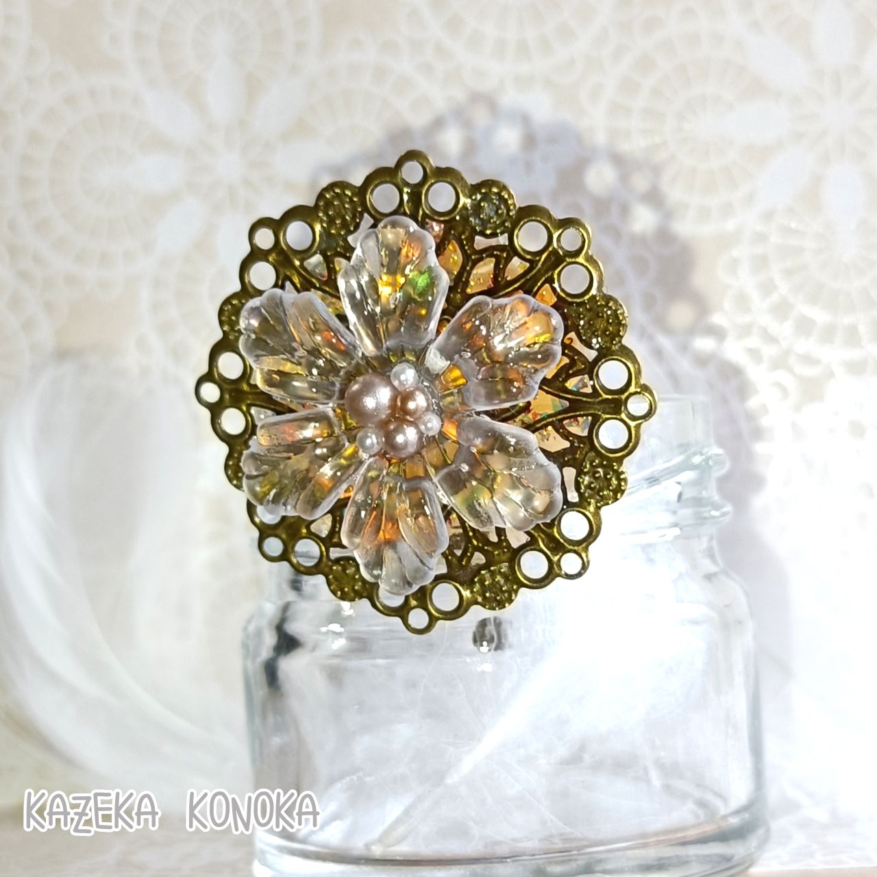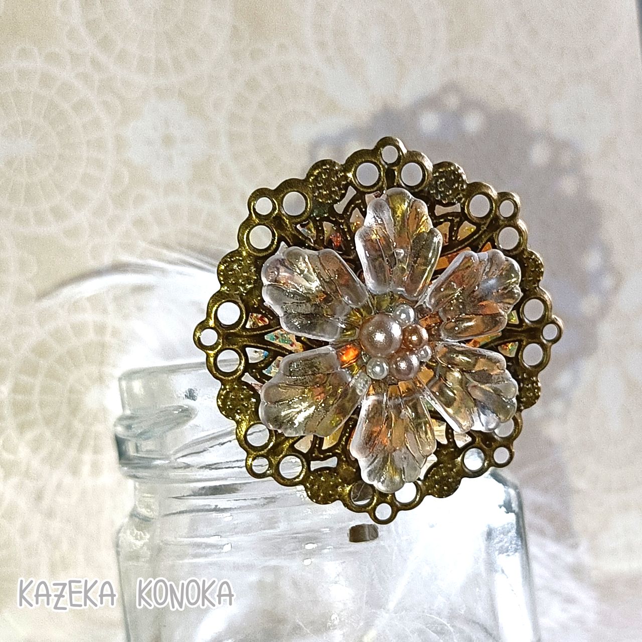 #ハンドメイド #ポニーフック #ブローチ #ヘアゴム #雪の花 #花 #オレンジ #髪飾り #冬アクセサリー #風香木ノ香 #かぜかこのか #kazekono