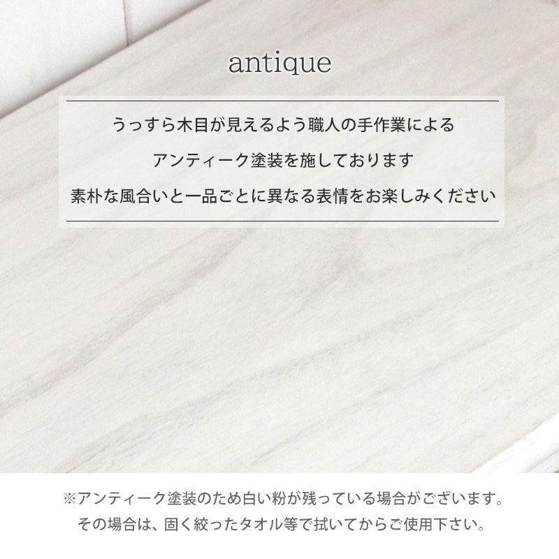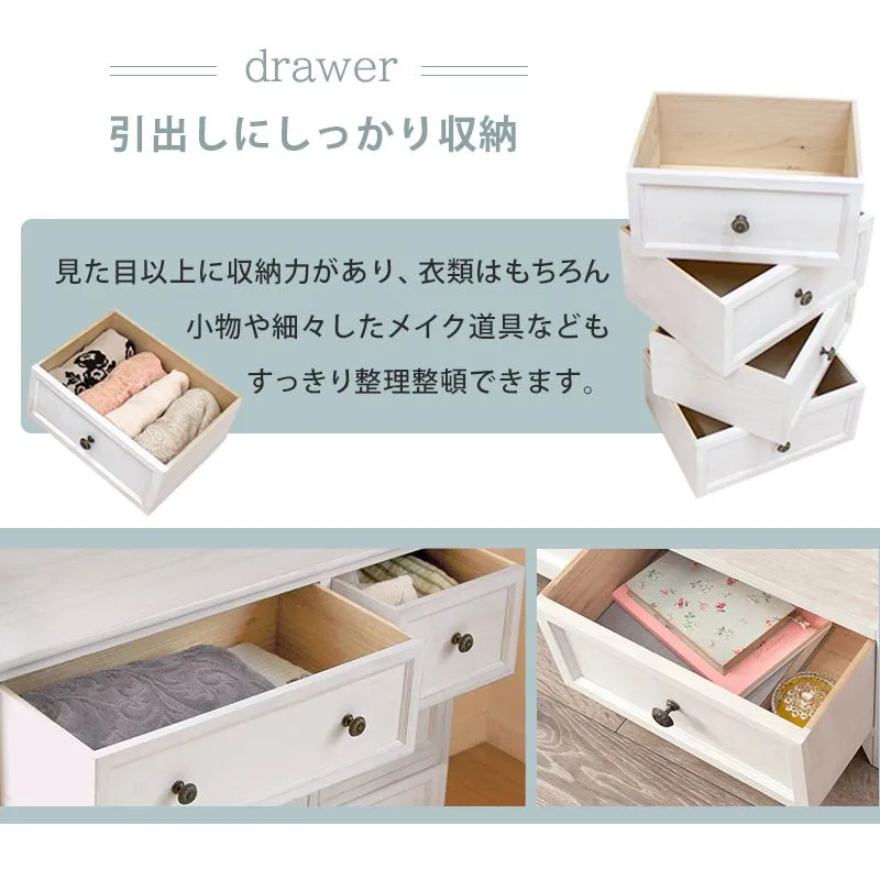 ※本商品は、北海道・沖縄・離島へ配送できません。 シンプルなデザインのチェストをフレンチアンティーク風に仕上げています。一人暮らしで使いやすいコンパクトサイズ。 生産地 中国製 サイズ (約)幅75×奥行31×高さ42cm 素材 主材:桐材 内寸
