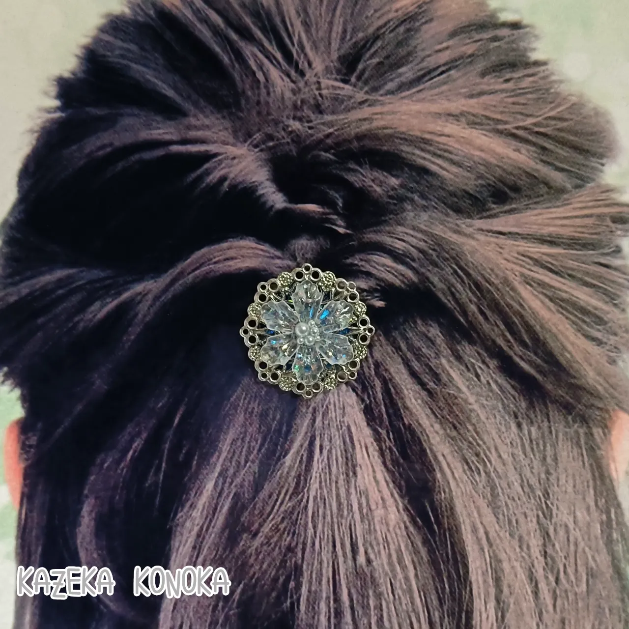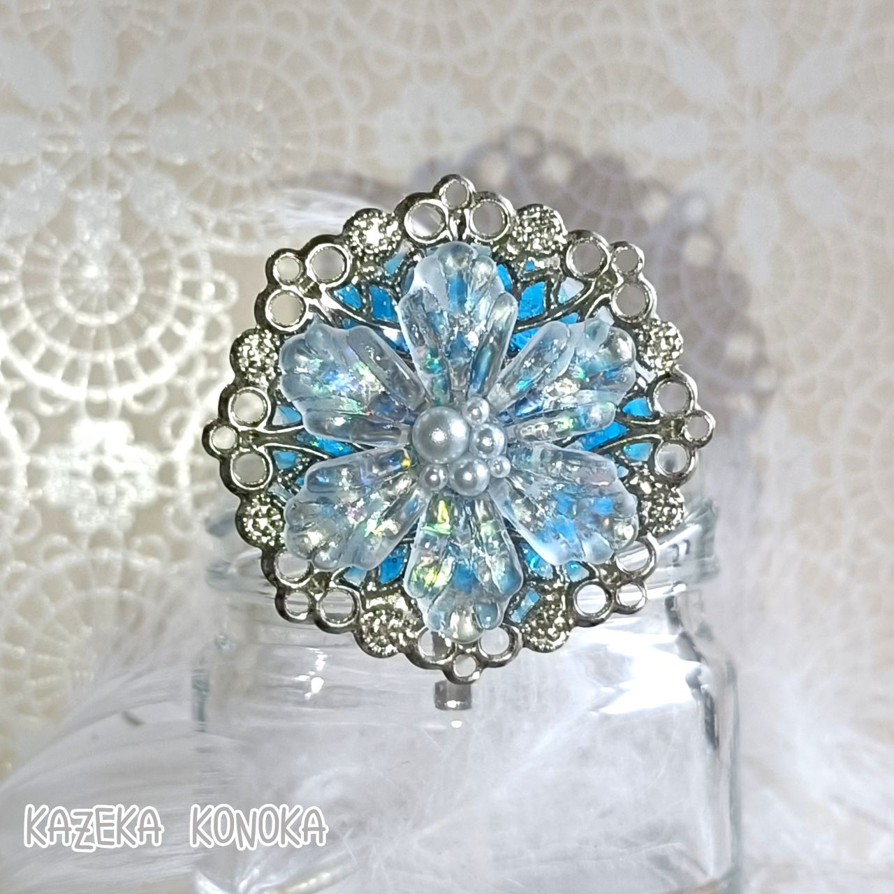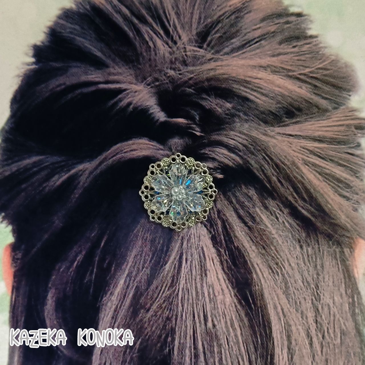 #ハンドメイド #ポニーフック #ブローチ #ヘアゴム #雪の花 #花 #ブルー #髪飾り #冬アクセサリー #風香木ノ香 #かぜかこのか #kazekono