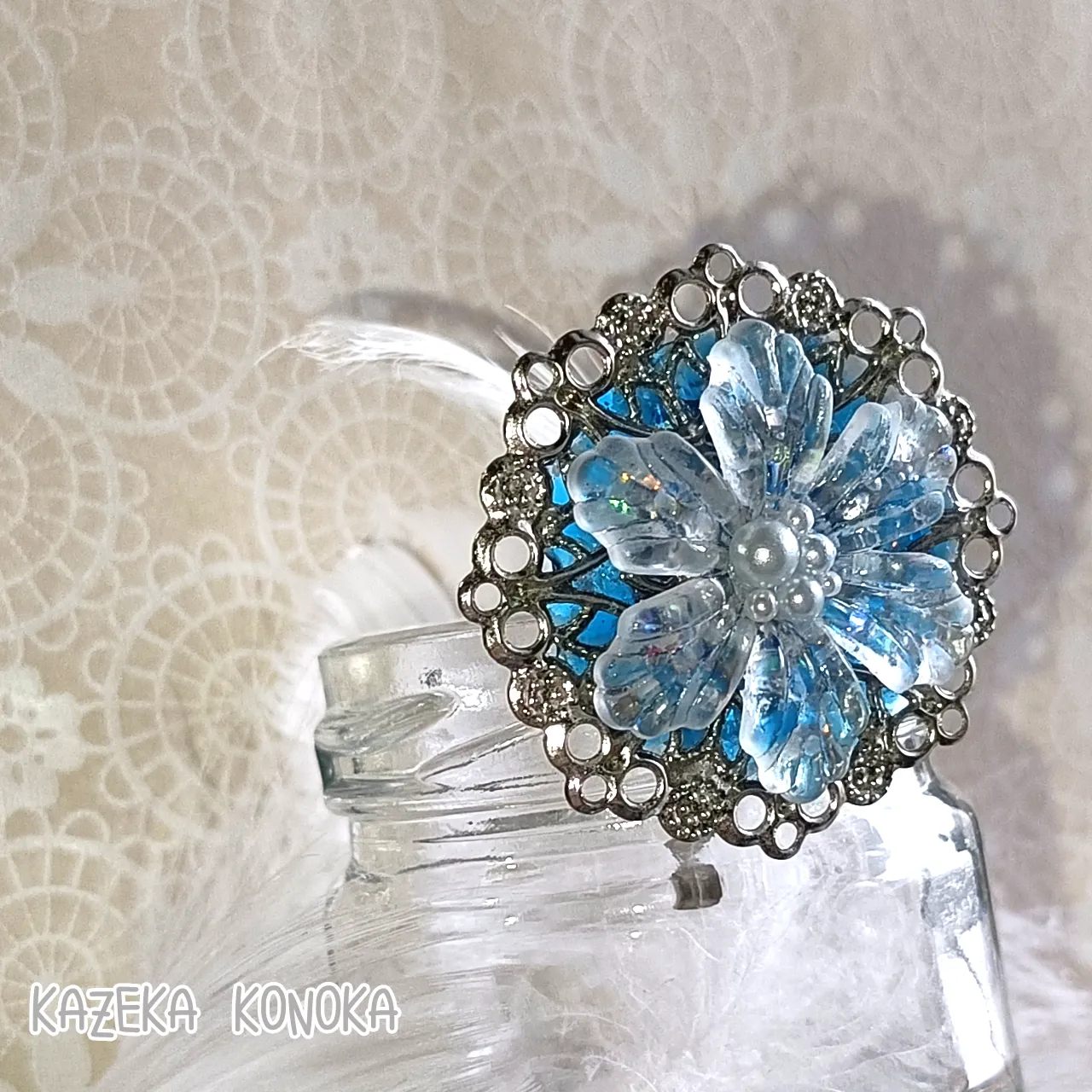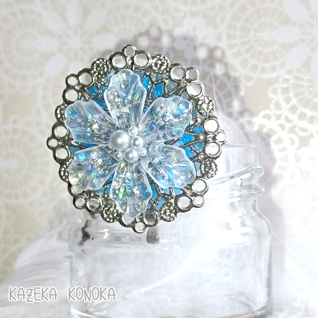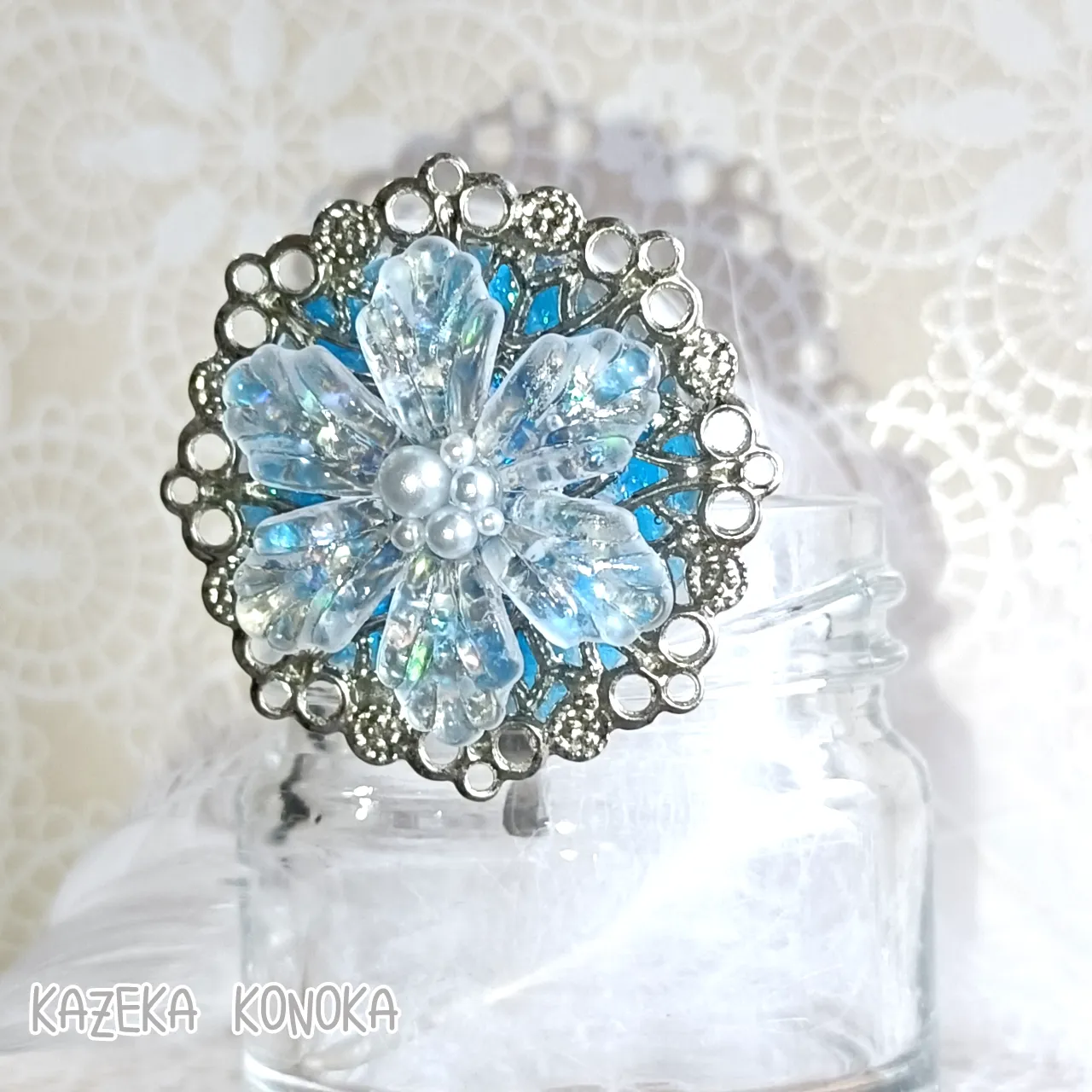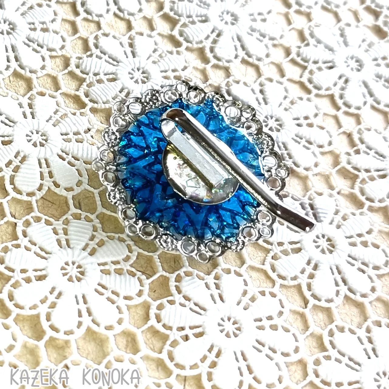 #ハンドメイド #ポニーフック #ブローチ #ヘアゴム #雪の花 #花 #ブルー #髪飾り #冬アクセサリー #風香木ノ香 #かぜかこのか #kazekono