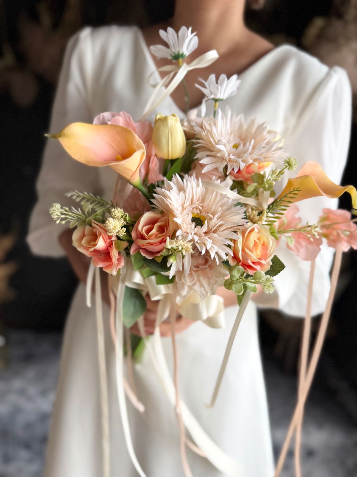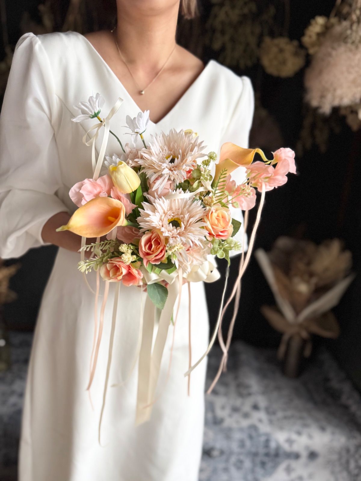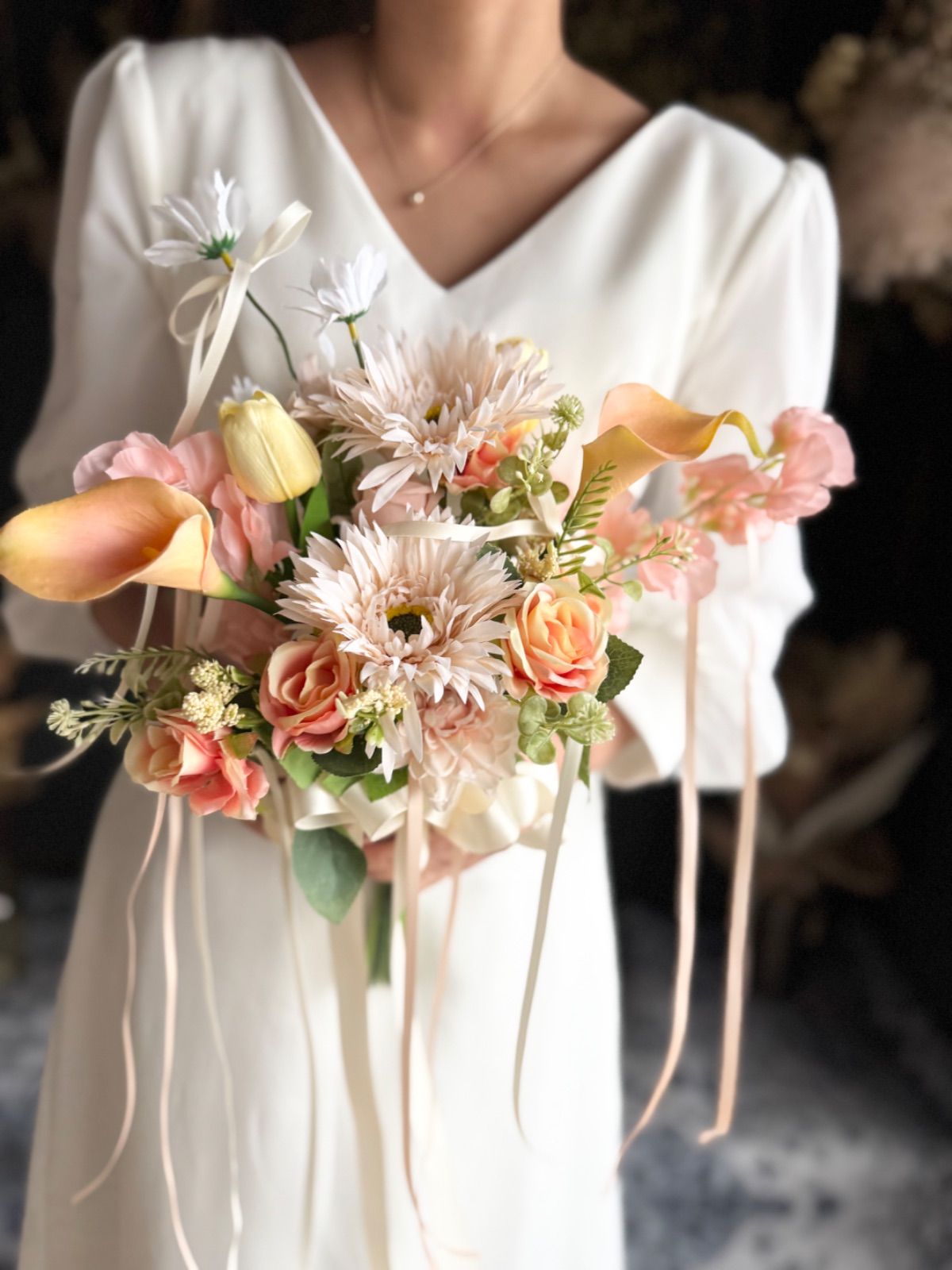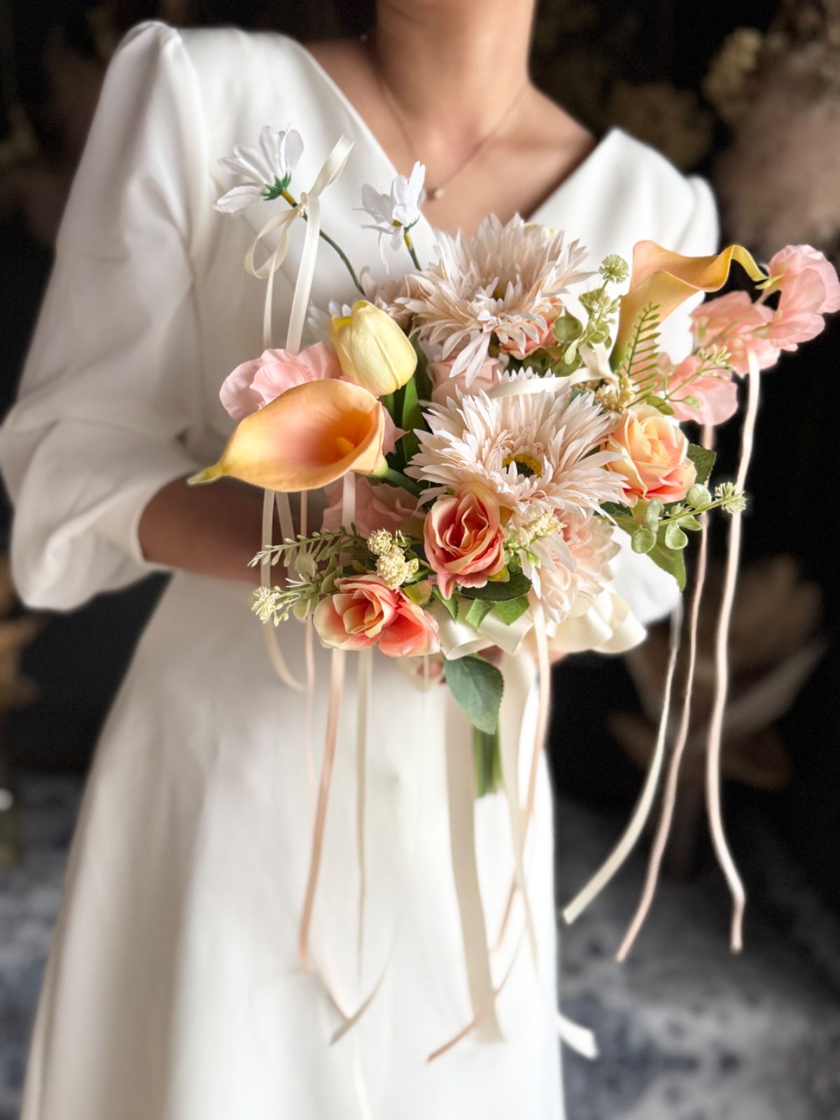 アーティフィシャルフラワー・造花のブーケです(‷ˊᗜˋ‷)ブートニア付き