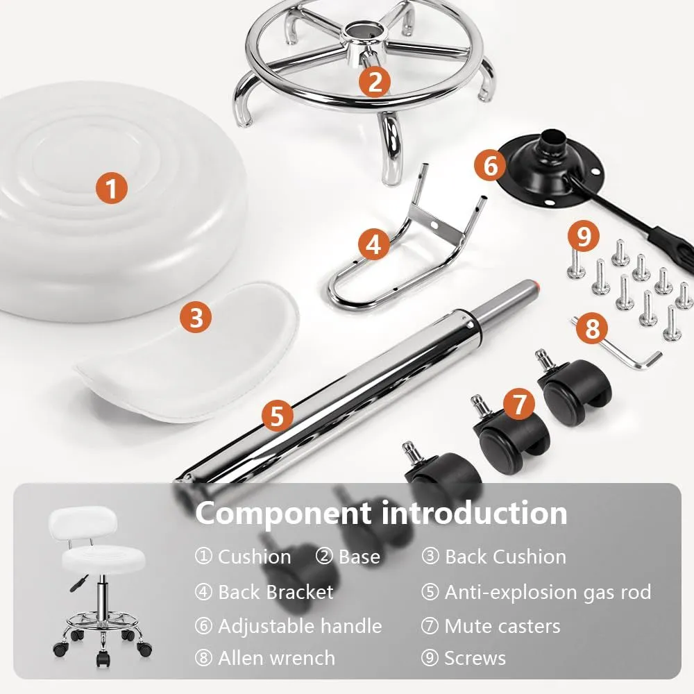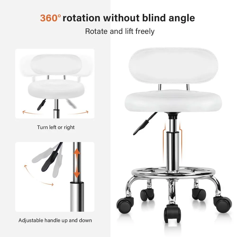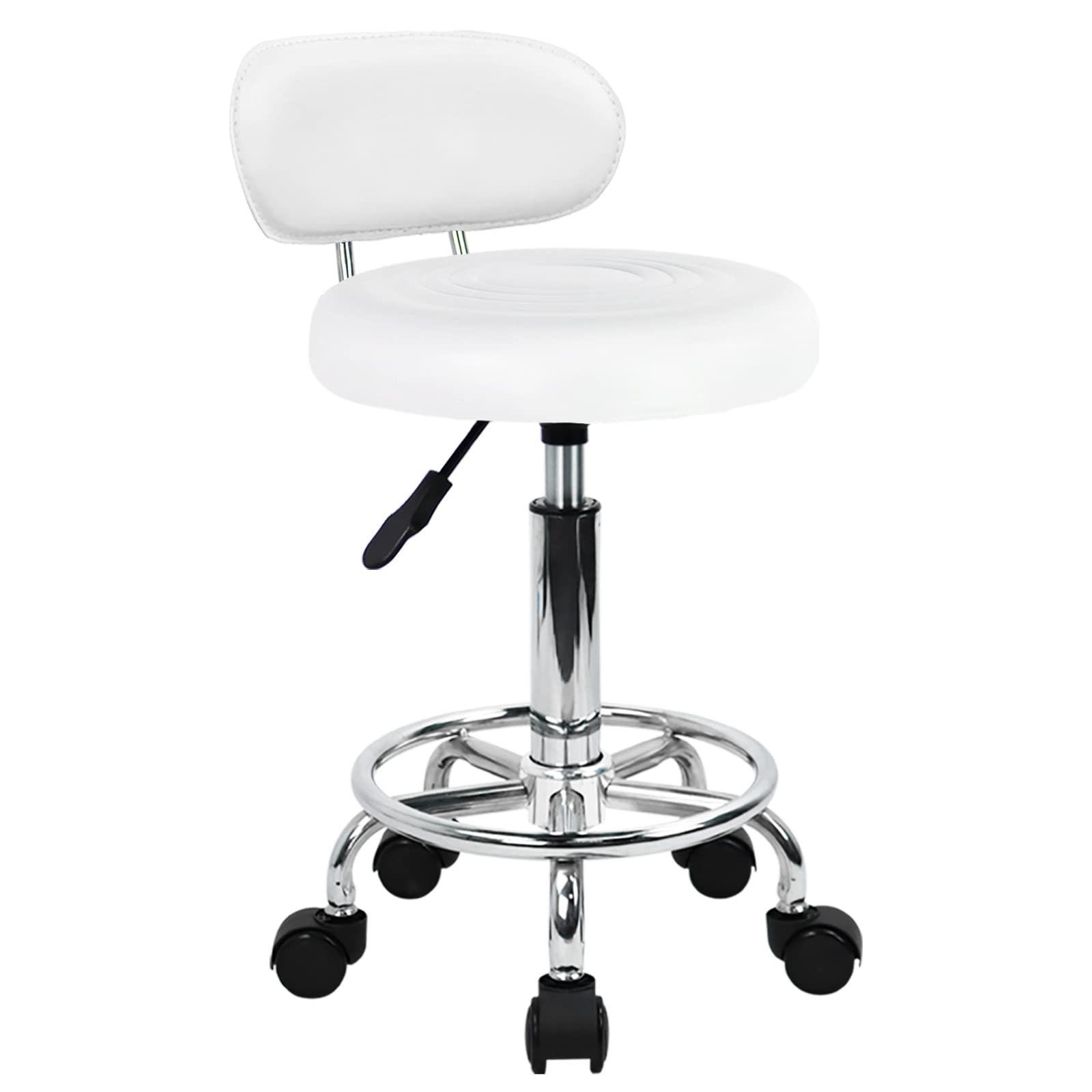 KKTONER 丸椅子 キャスター付きスツール 低い背もたれ脚つき 昇降スツール デスクチェア ネイル製図キッチン椅子 高さ調節 カウンターチェア PUレザー ホワイト S サイズ (白)
