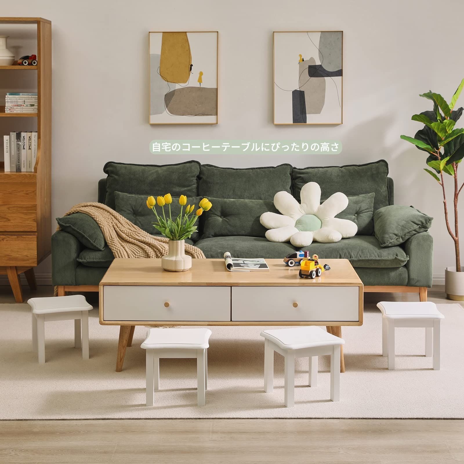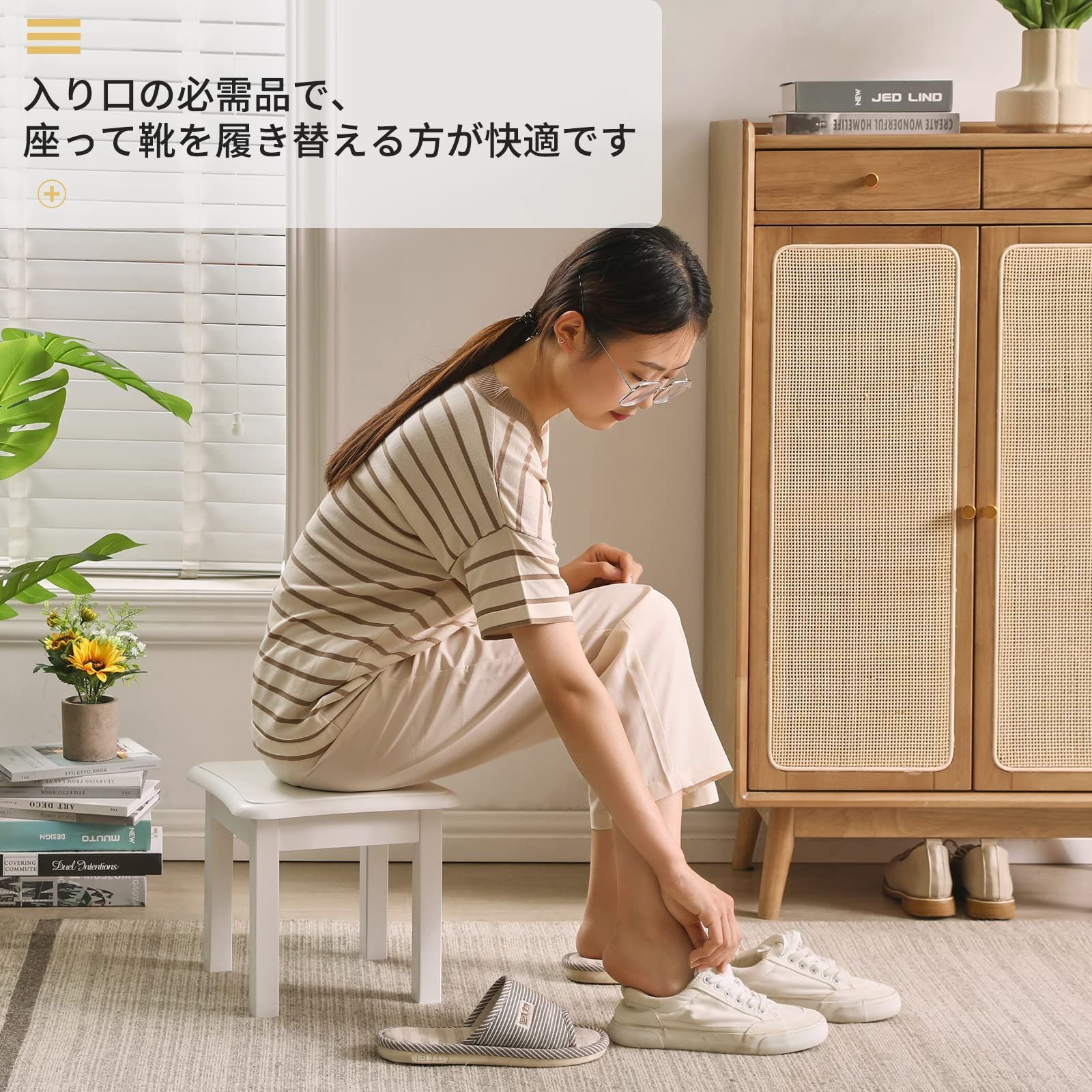 スツール木製 ミニテーブル 低い 踏み台 小さい 椅子 29x29x27cm 腰掛け 花台 天然木 無垢木材 ウッドスツール ミニスツール 足置き 耐荷重150kg 白い JPRF-1498