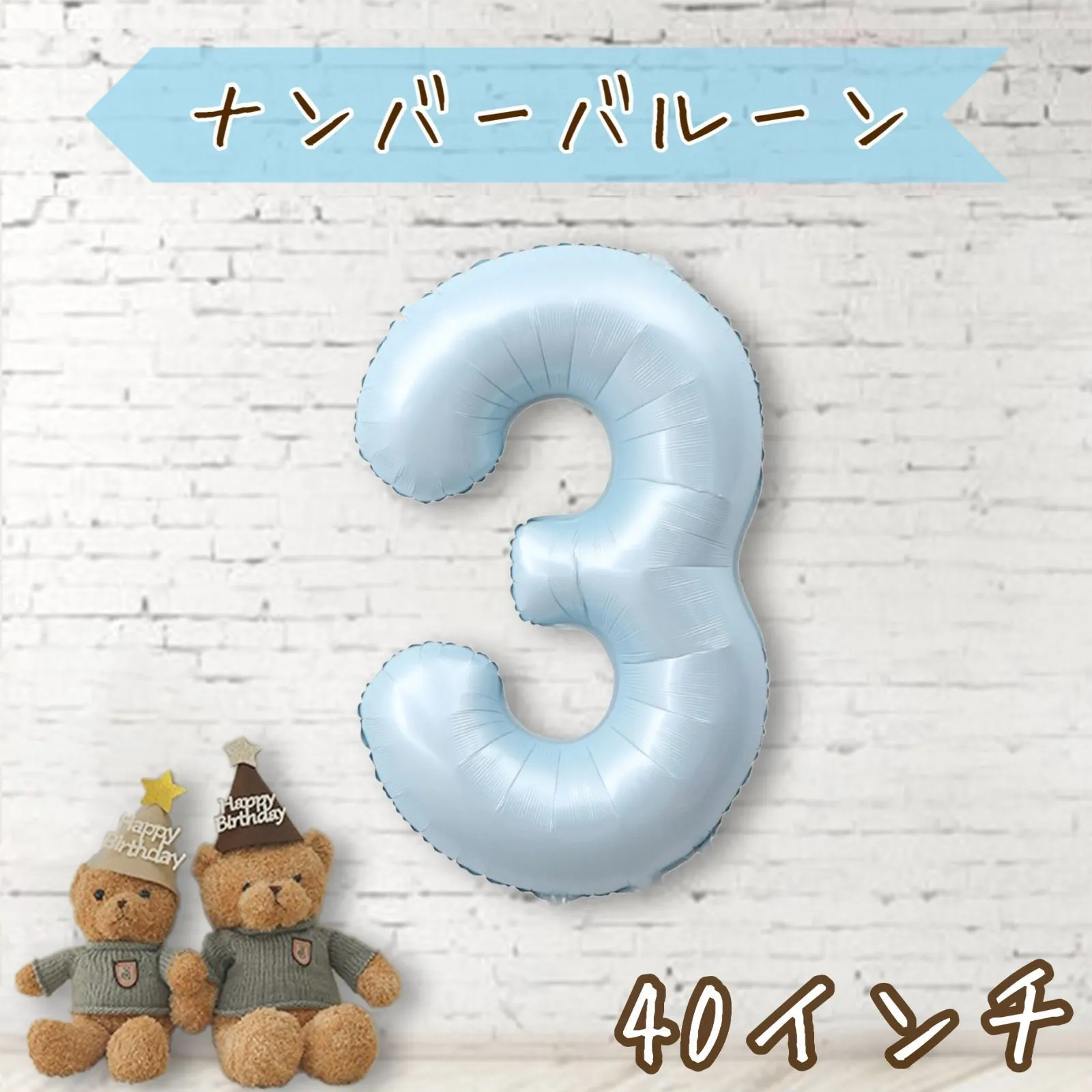 ★くすみブルー 数字バルーン 飾りつけ 飾り付け★