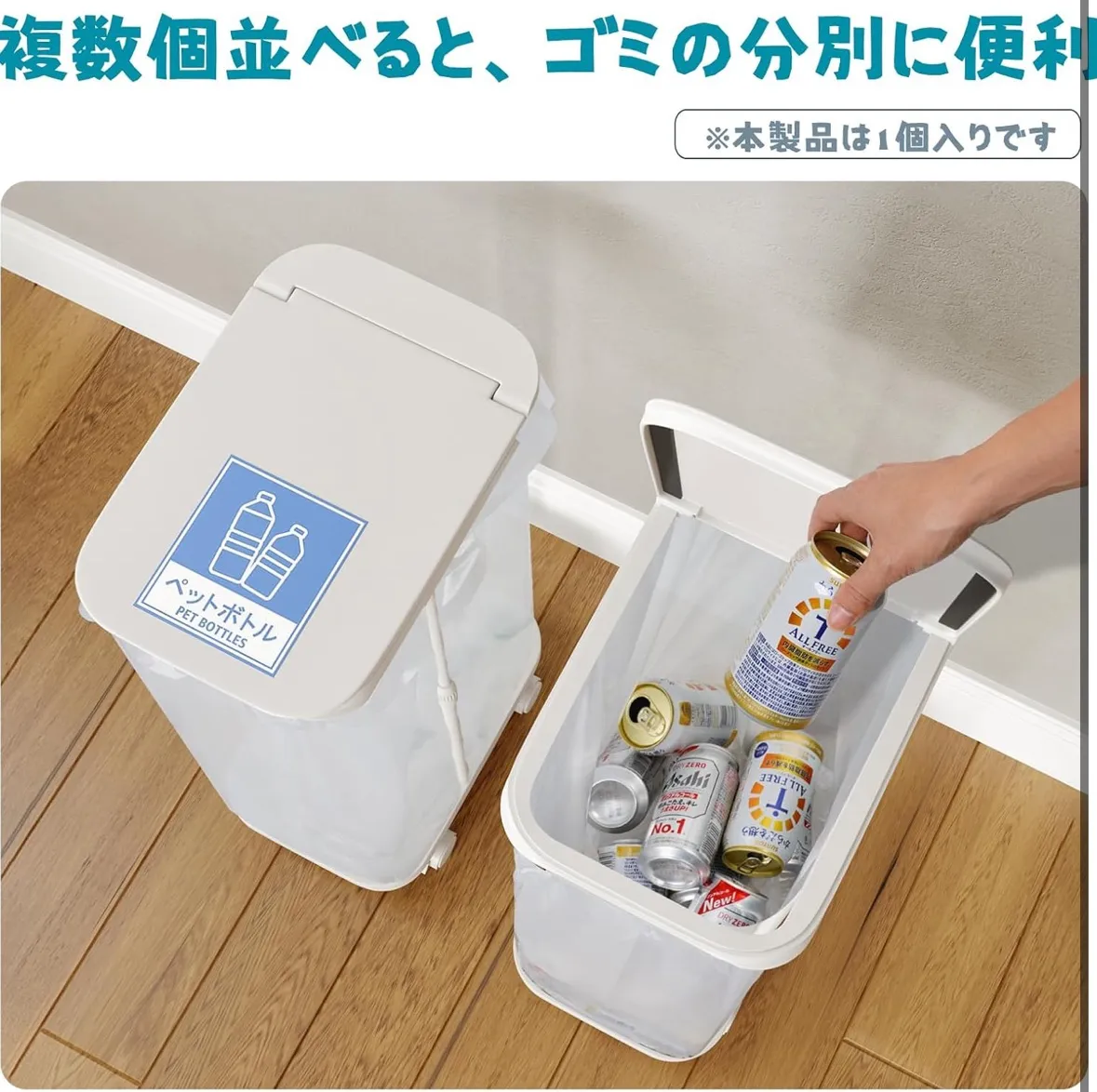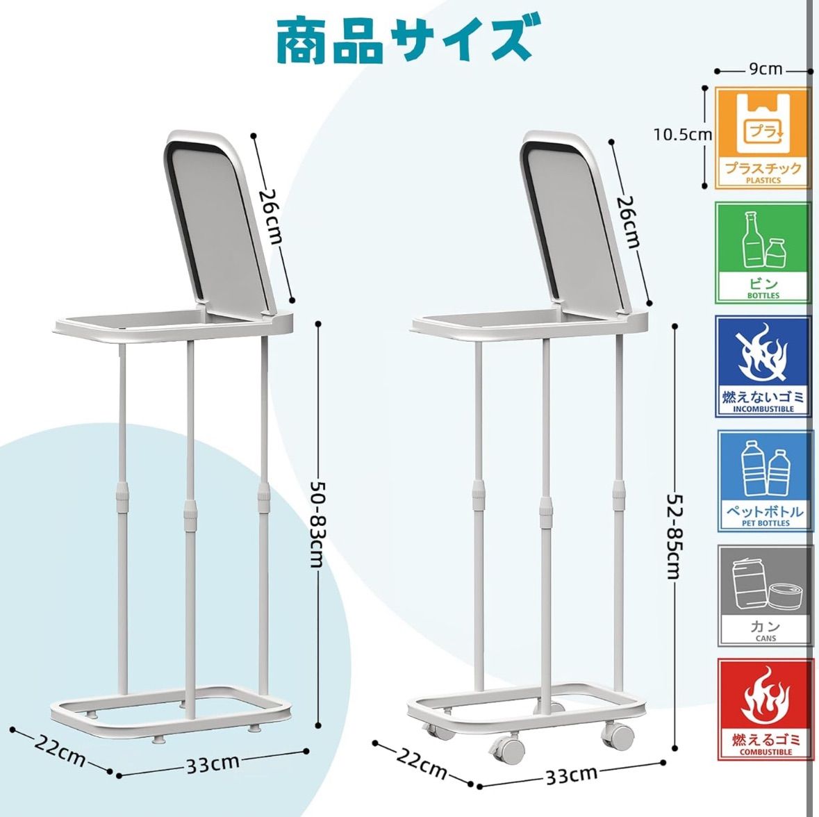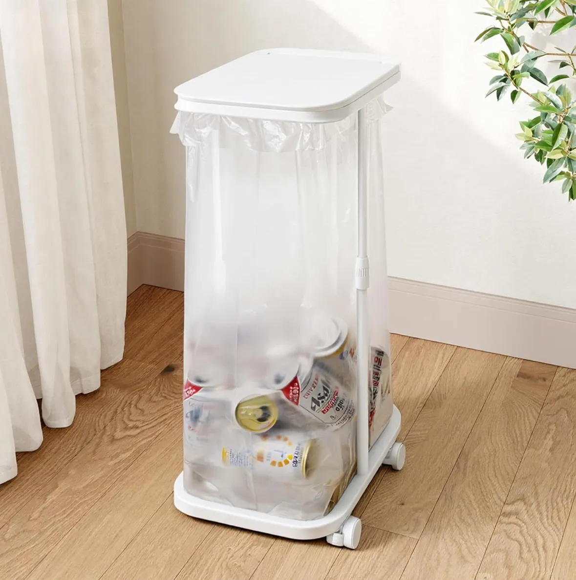 ゴミ箱の汚れが気になりませんか?本製品は壁なしで袋をかけるだけです。蓋が汚れたら水で直接洗えるので、手軽に清潔に保てます。キャスターとフットパッドが付属するので場所に応じて設置ができます。キャスターがないと、掃除機を使うなどで動かすのに不便です。360度キャスター付きで、スイスイ移動できてとても便利です。この商品を使って、ゴミ箱の汚れストレスから解放!