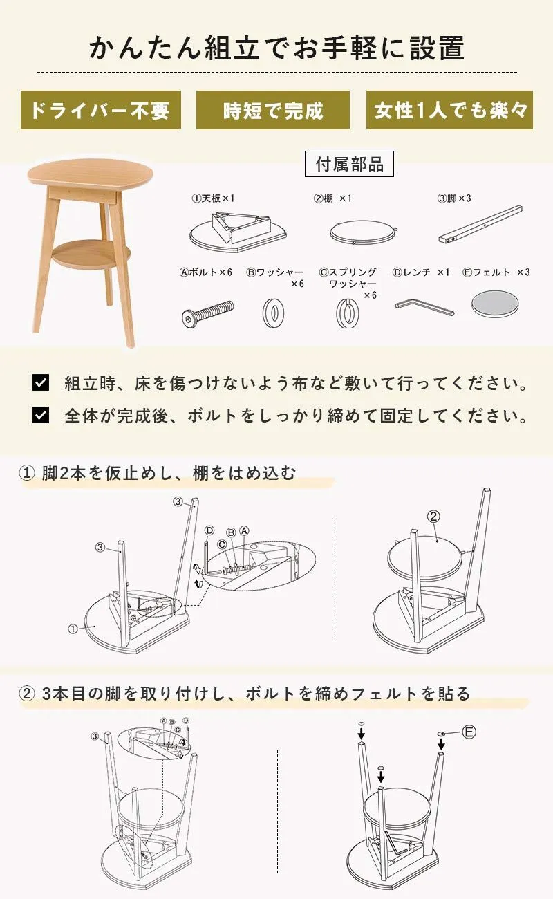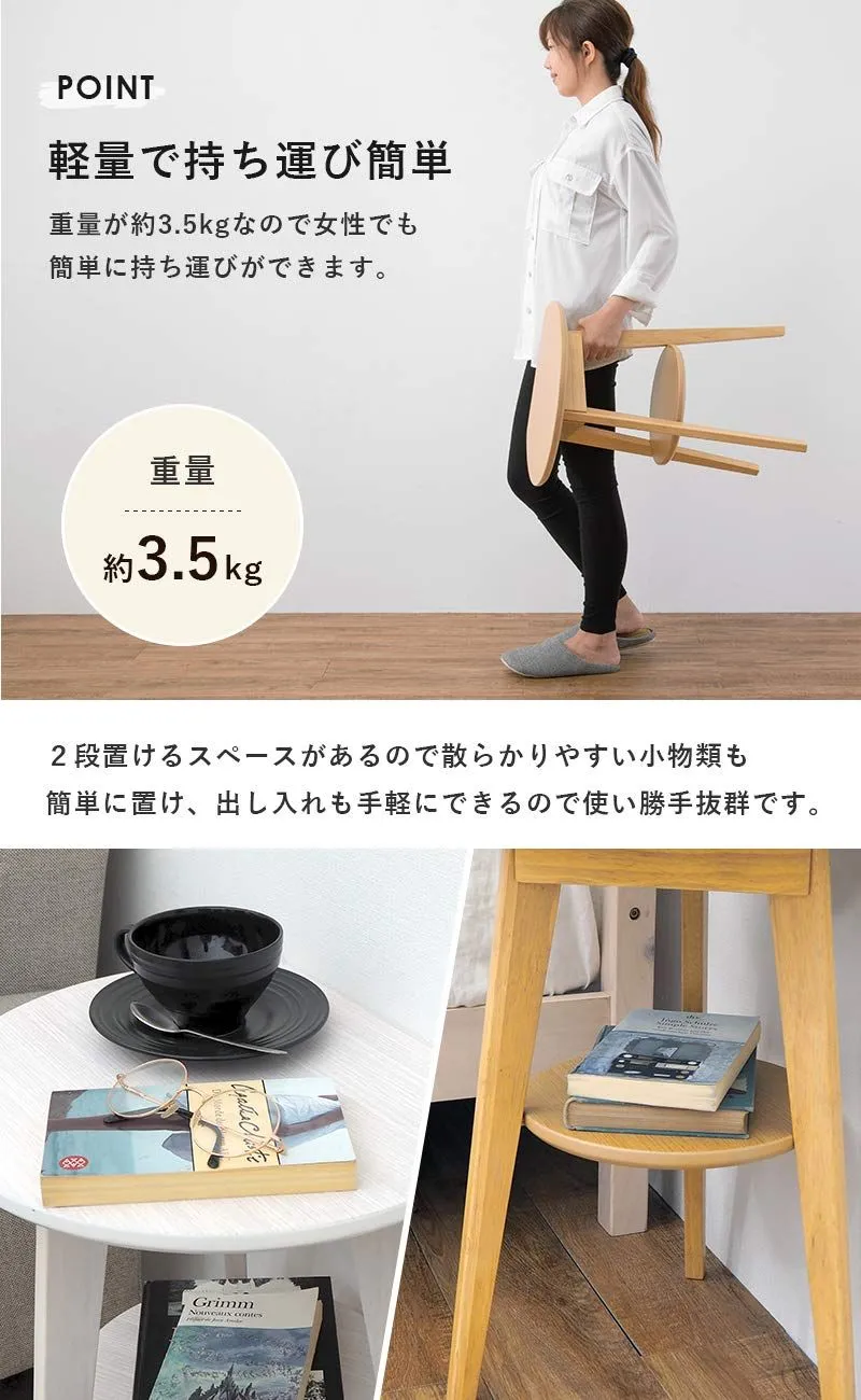 萩原(Hagihara) サイドテーブル 丸型 机 ナイトテーブル