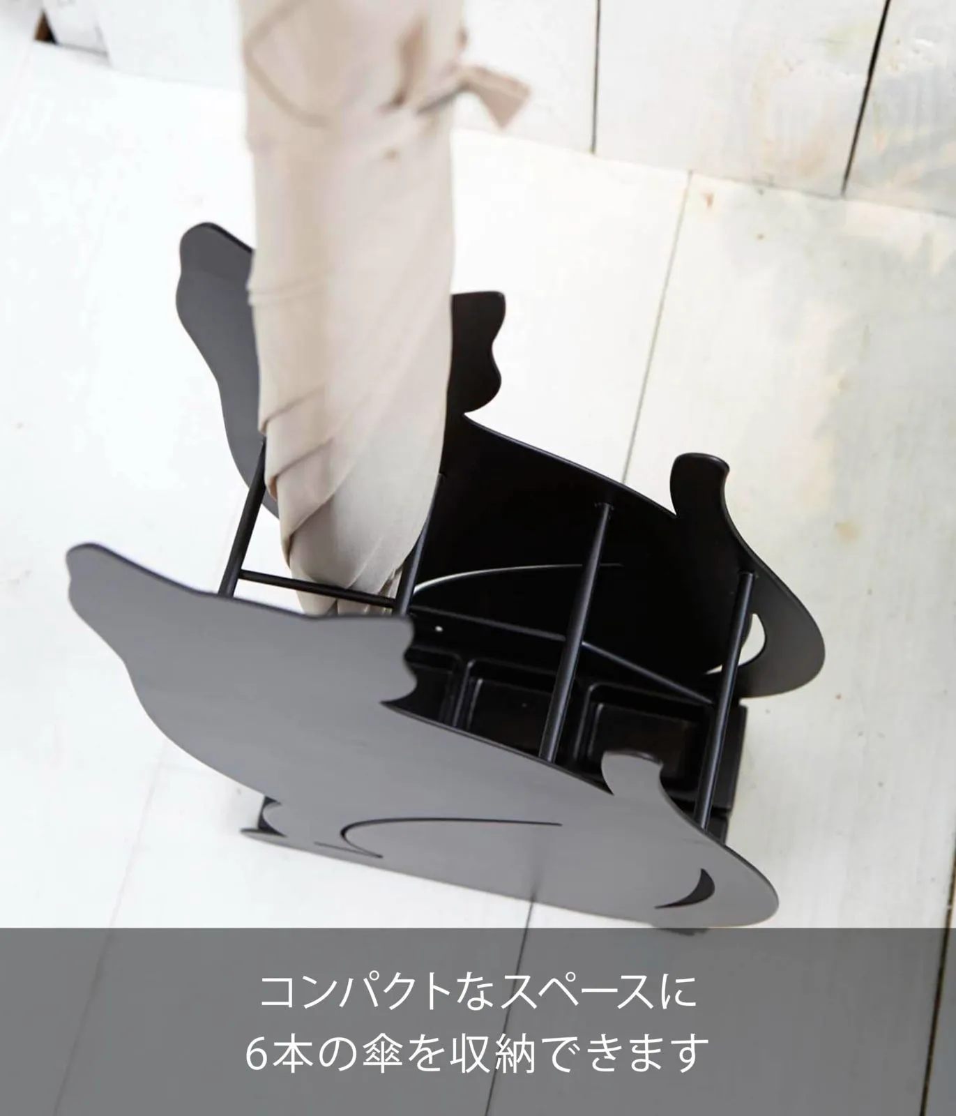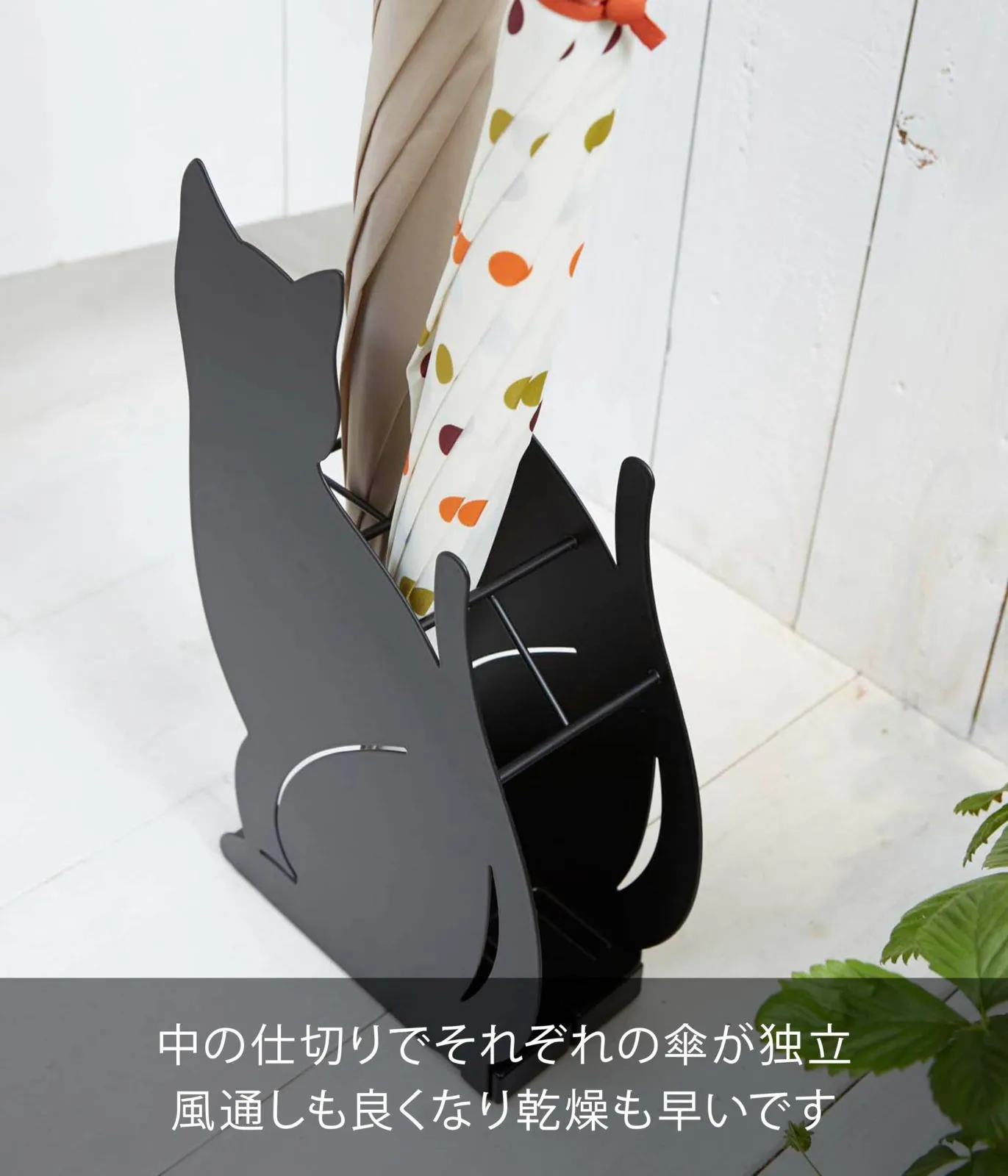 ●かわいいネコが玄関でお出迎え。楽しく収納できるアンブレラスタンド。中の仕切りが傘どうしが濡れるのを防いでくれる