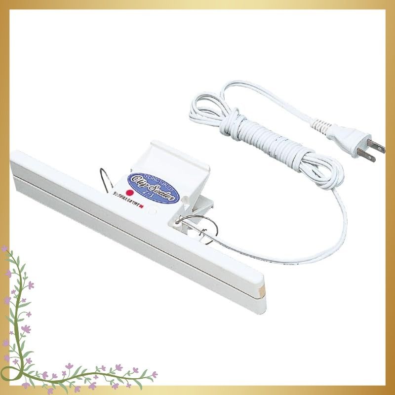 シール寸法:巾2×長200mmシールや密封を簡単に行うことができるクリップシーラーです。20センチ幅のシールが可能です。クリップの取っ手を握って口を開け袋を挟み、ランプが消えるまでボタンを押すだけの簡単シーラーです。手作りお菓子等のラッピングや、多量の食材小分け時の密封、開封後の乾物の長期保存などに最適です。電圧100V 電力200W交換用テフロンテープ:5095、交換用ヒーター:5172
