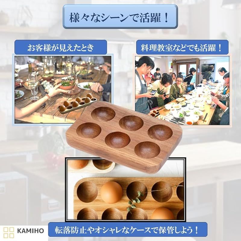 商品名:KAMIHO 卵ケース たまごケース エッグホルダー ゆでたまご 茹で卵 (6穴1列, アカシア)