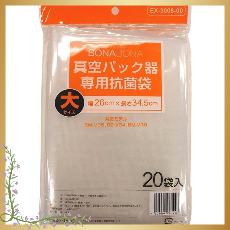 【BONABONAシリーズ】 真空パック器専用抗菌袋(大20枚入り) EX-3008-00