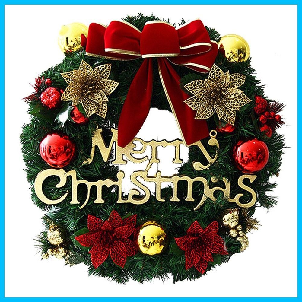 クリスマス リース オーナメント クリスマス 飾り かわいい 壁掛け ドアチャーム 玄関 ドア インテリア リボン 花 鈴 ベル 30CM ポリ塩化ビニル(PVC) グリーン