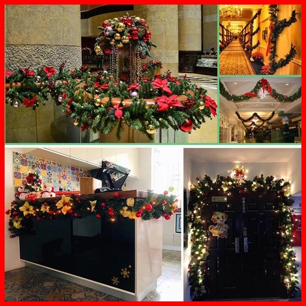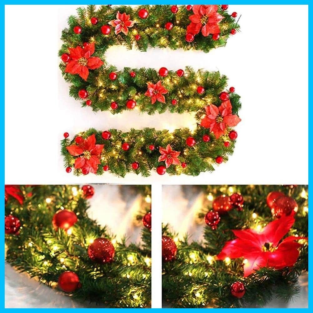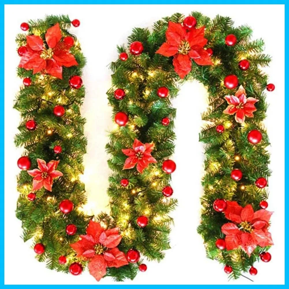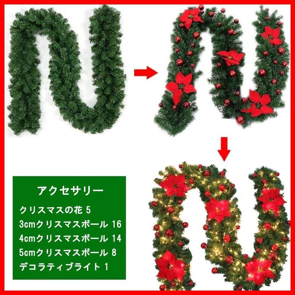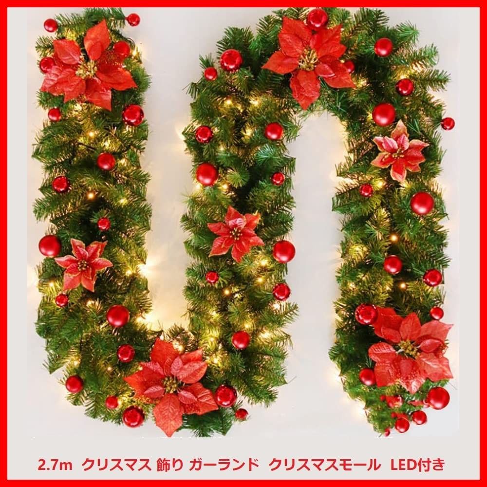 クリスマス 飾り ガーランド クリスマスモール 2.7m LEDライト付き クリスマスリース クリスマスツリー 飾り デコレーション キャンディー オーナメント ガーランド クリスマス用品 喫茶店 飲食店 柵 階段の手すり 玄関 ドア 窓 パーティー装飾藤 ガーデン装飾籐 松の葉モール 電池式 (レッド 2.7m)