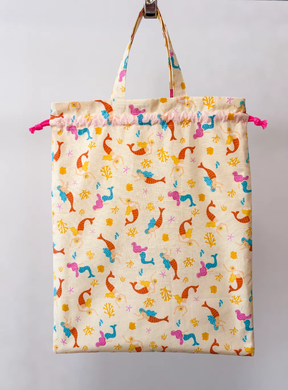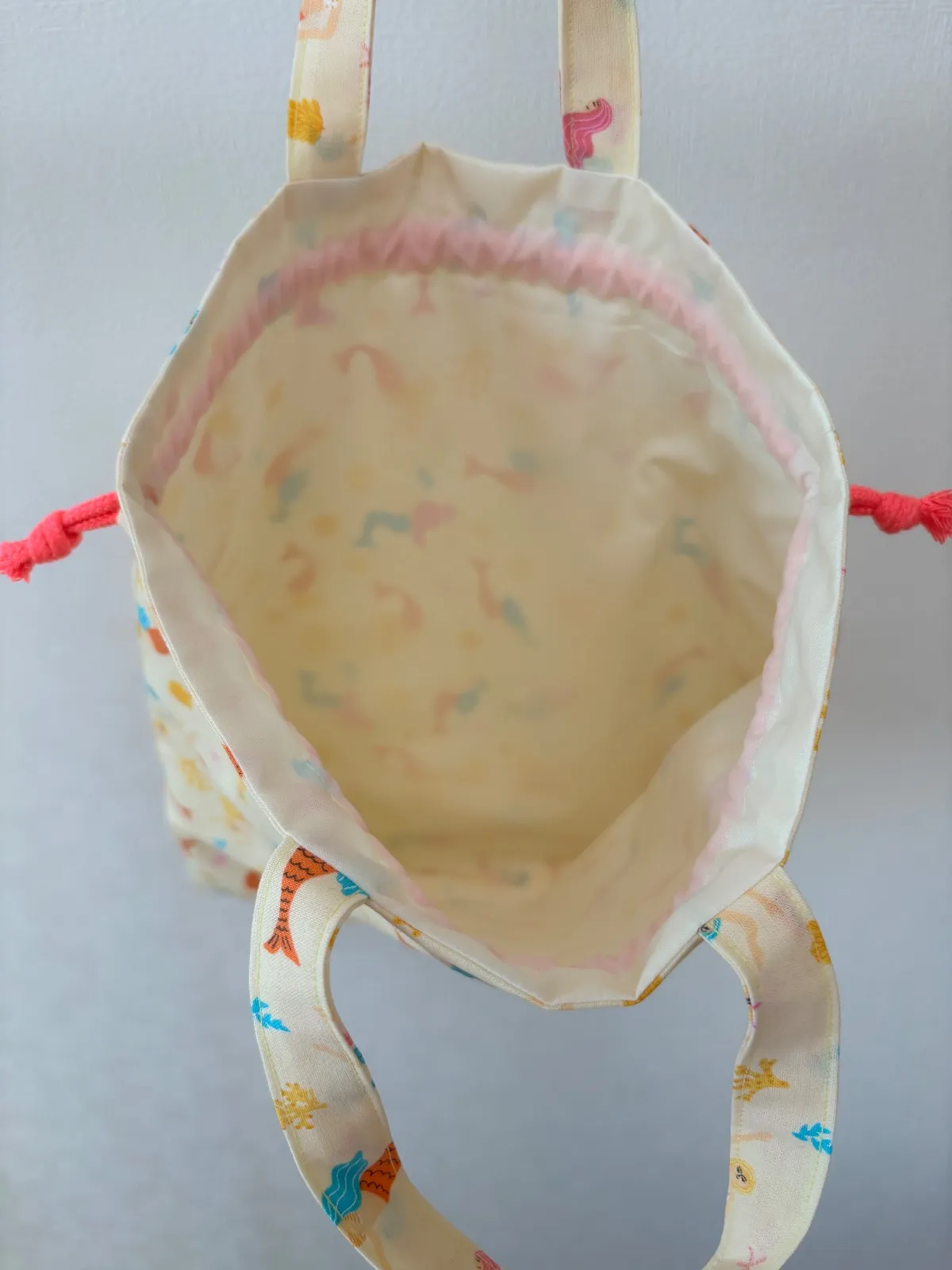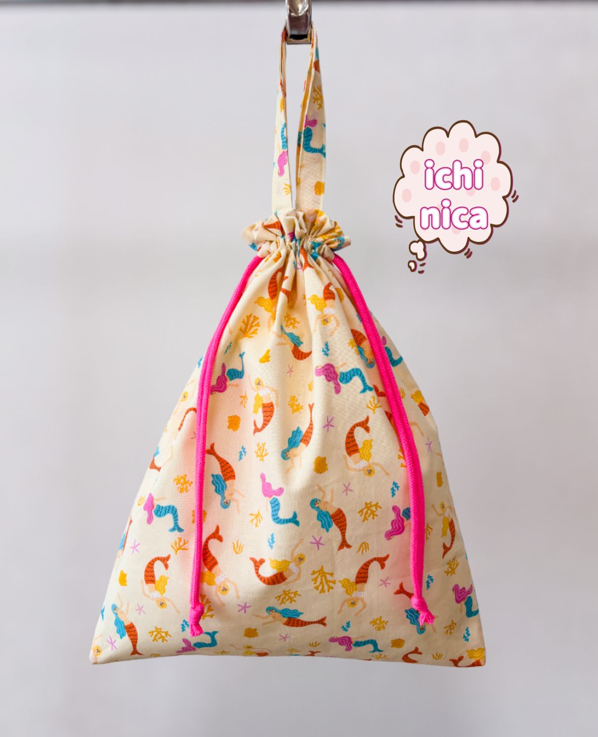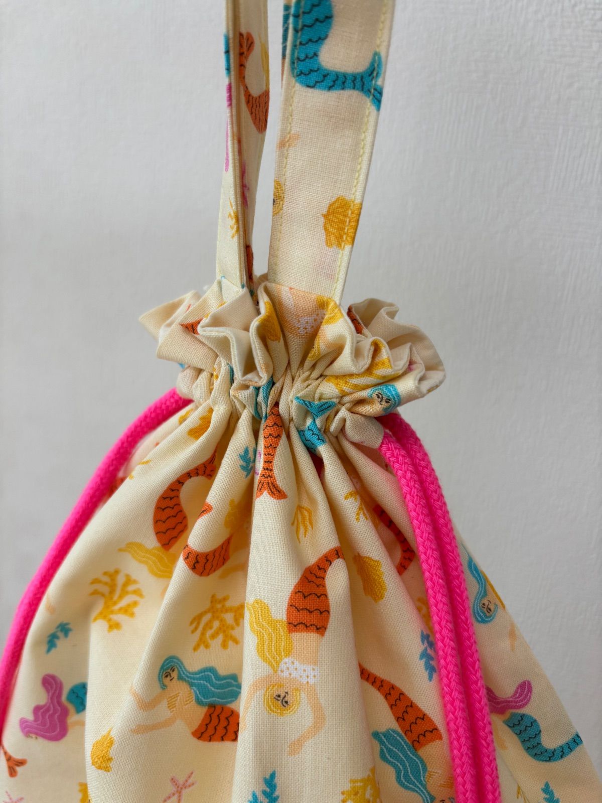 マーメイド柄がかわいい持ち手付き巾着袋です。