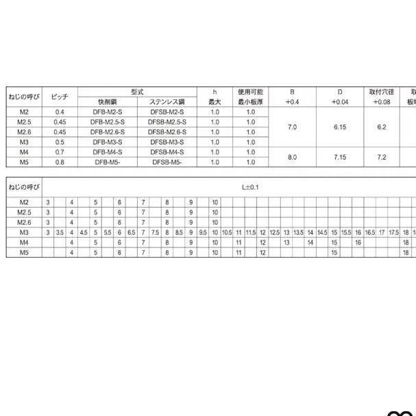 ●最小板厚1.0mmより取り付け可能です。