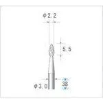 原産国:日本 形状:雫(ダブルカット) 軸径(mm):3 刃径(mm):2.2 全長(mm):38 刃長(mm):5.5 最高使用回転数(rpm):60000