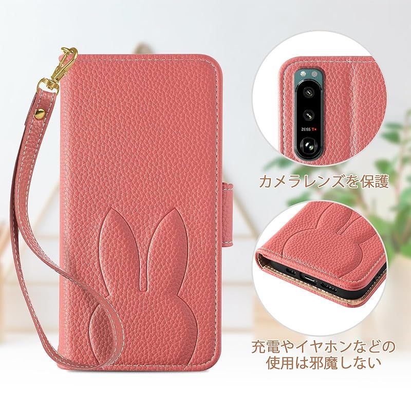 商品名:Reddylin 対応 Xperia 5 III ケース 手帳型 かわいいウサギ おしゃれ エクスペリア5iiiケース 手帳型 スタンド機能 カード収納 SO-53B 携帯ケース xperia5iii ケース 全面保護 衝撃吸収 耐久性 マグネット式 A103