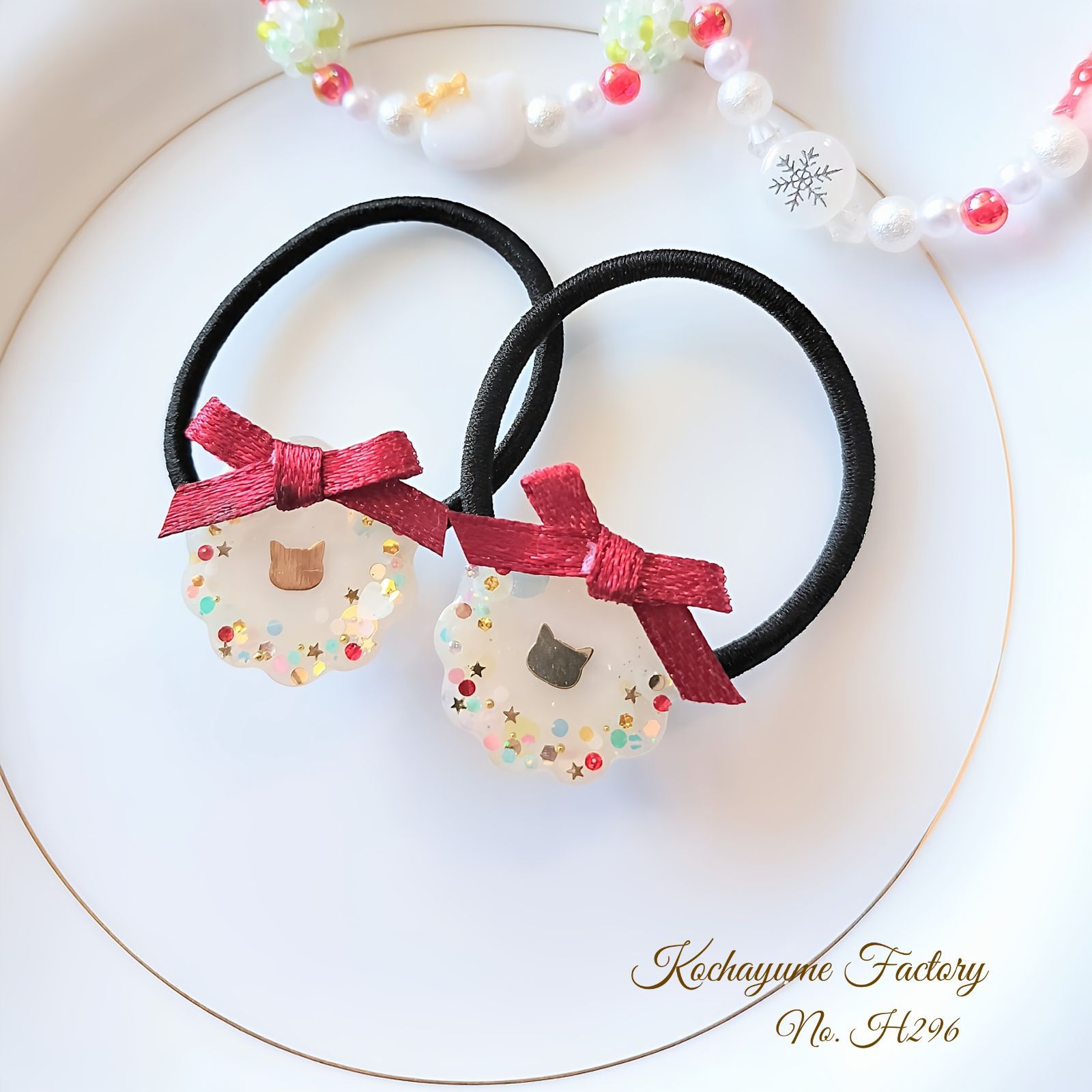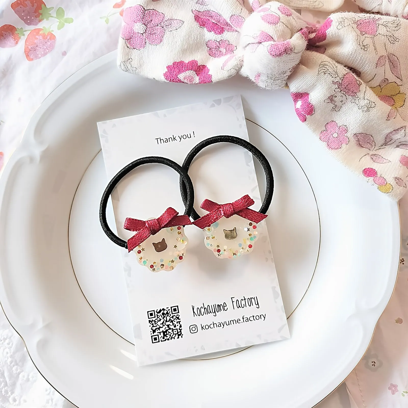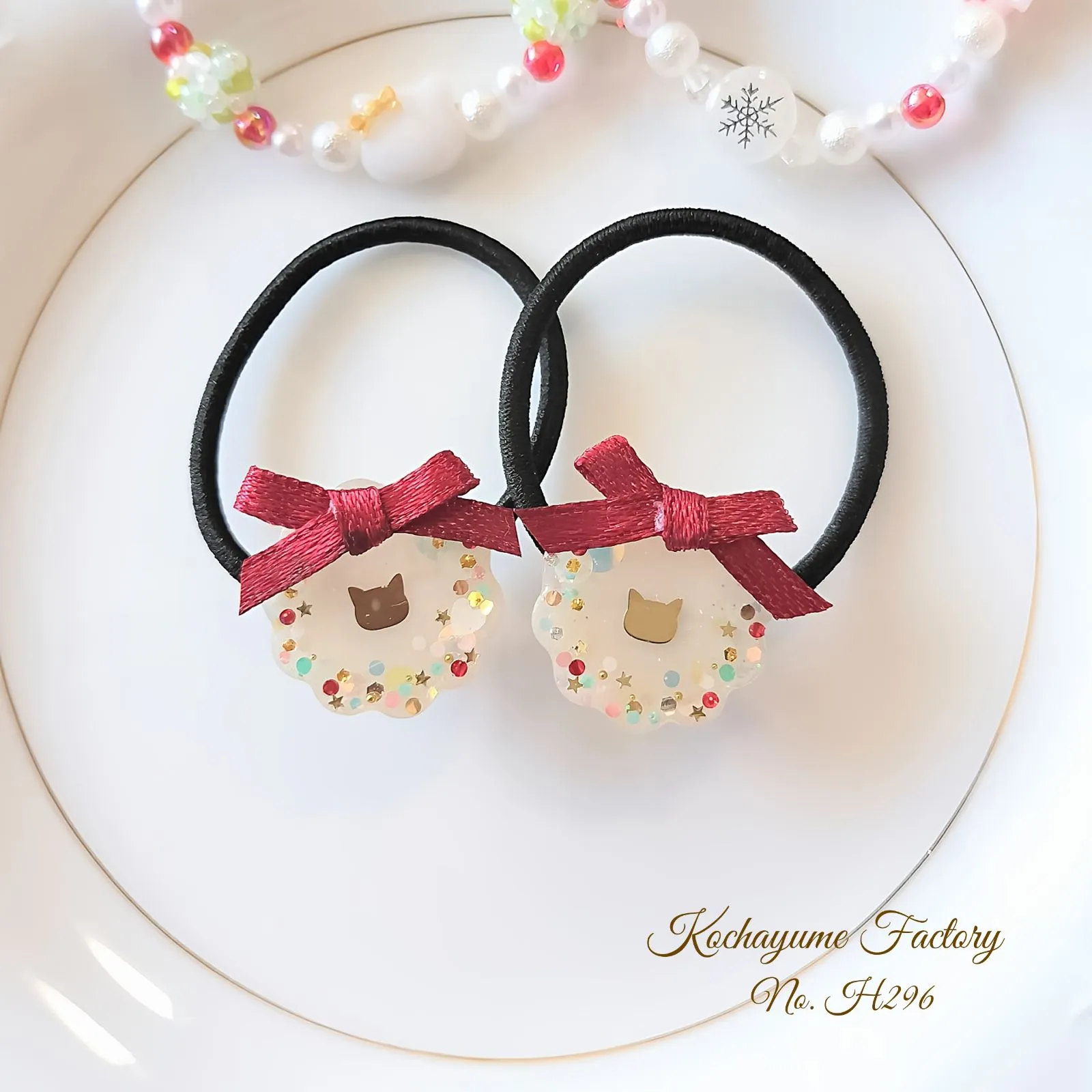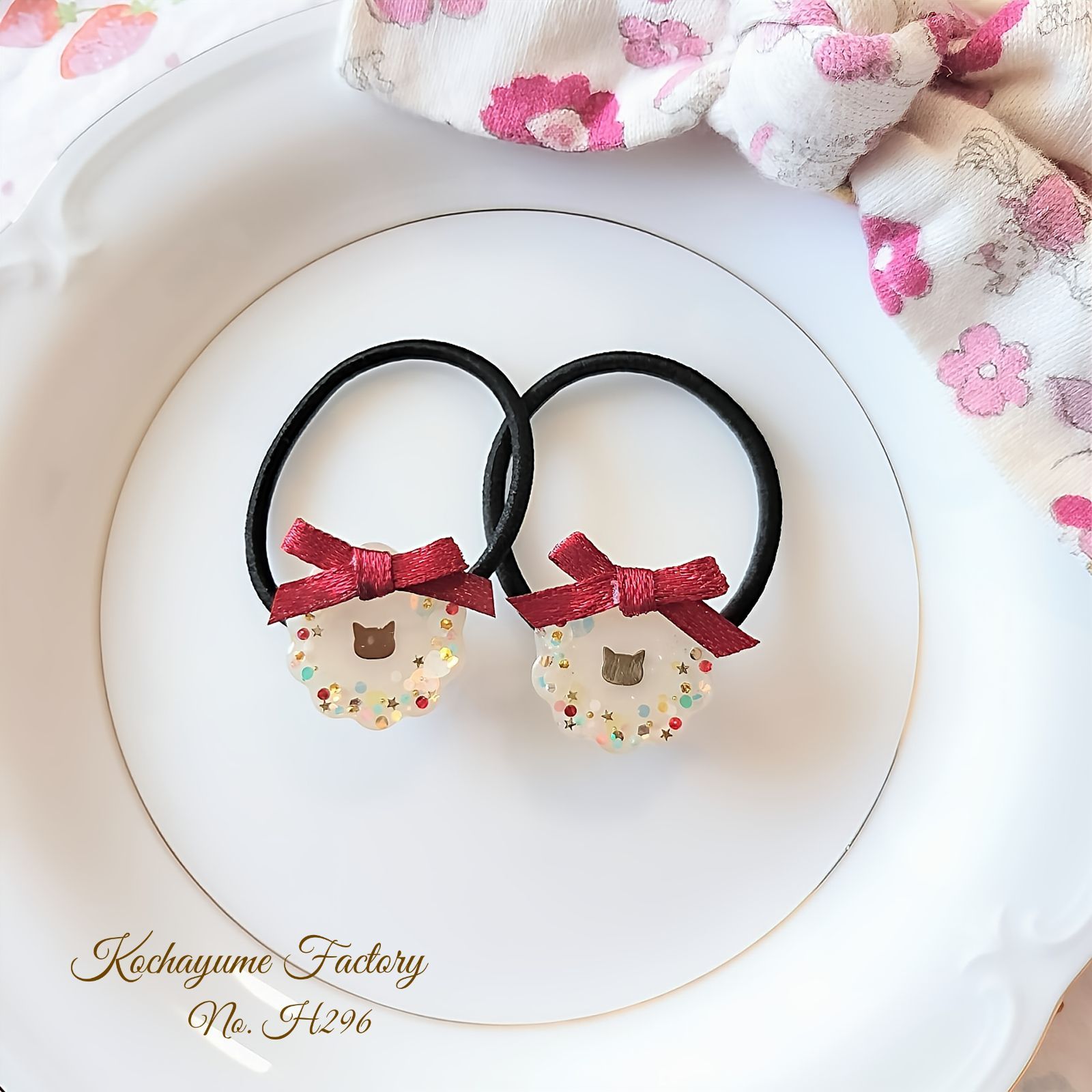 レジンで作ったねこちゃんマークとリボンがかわいらしいヘアゴムです(*^^*)