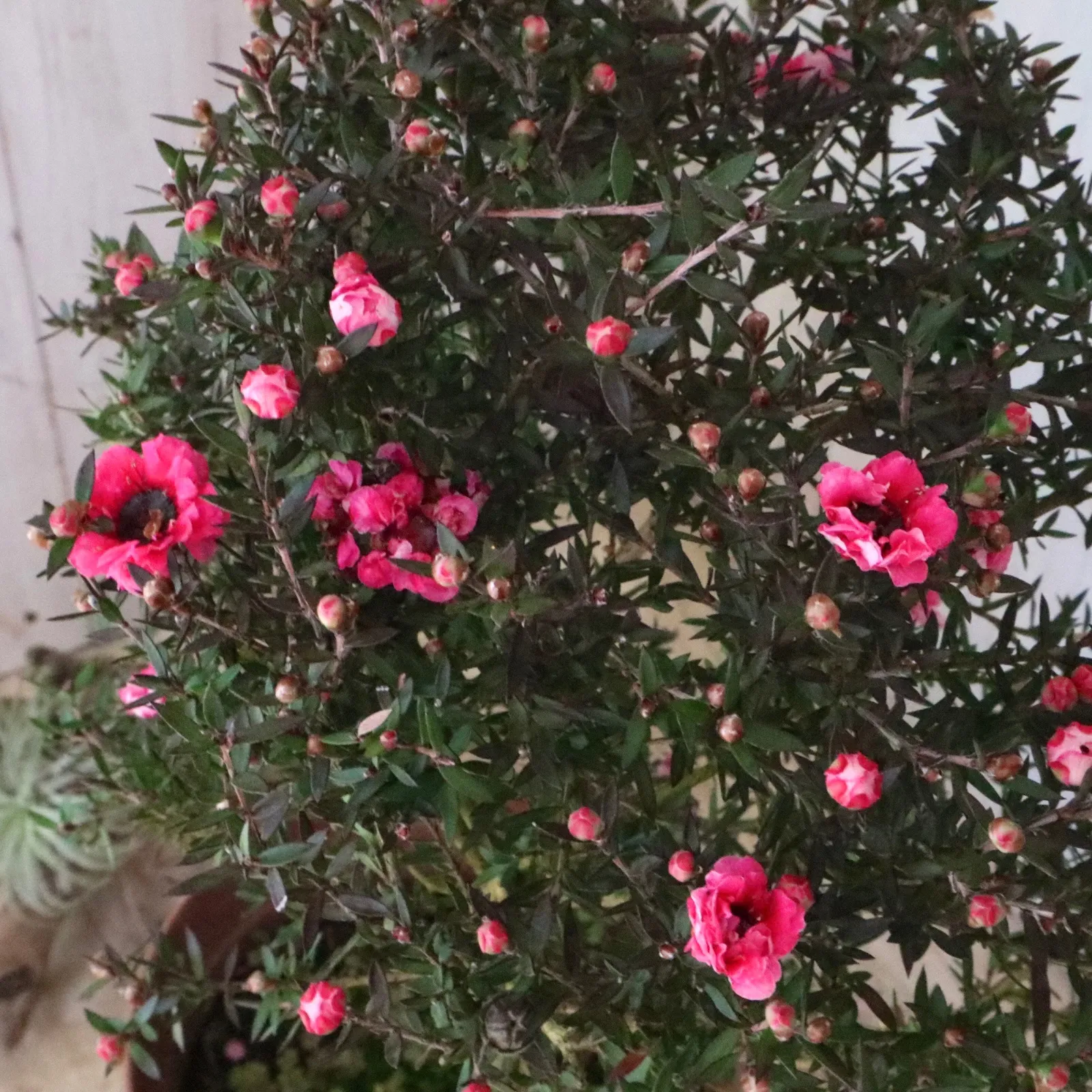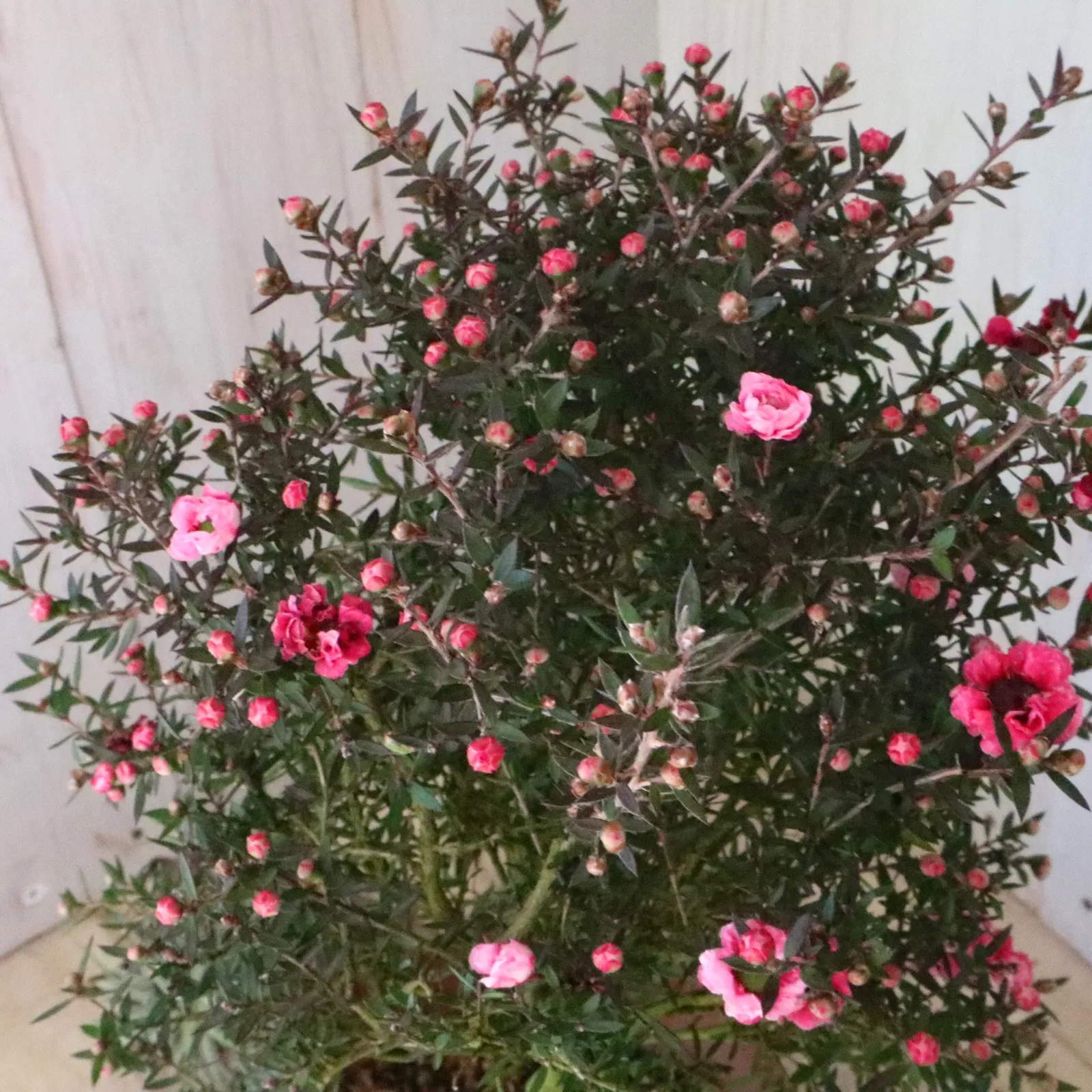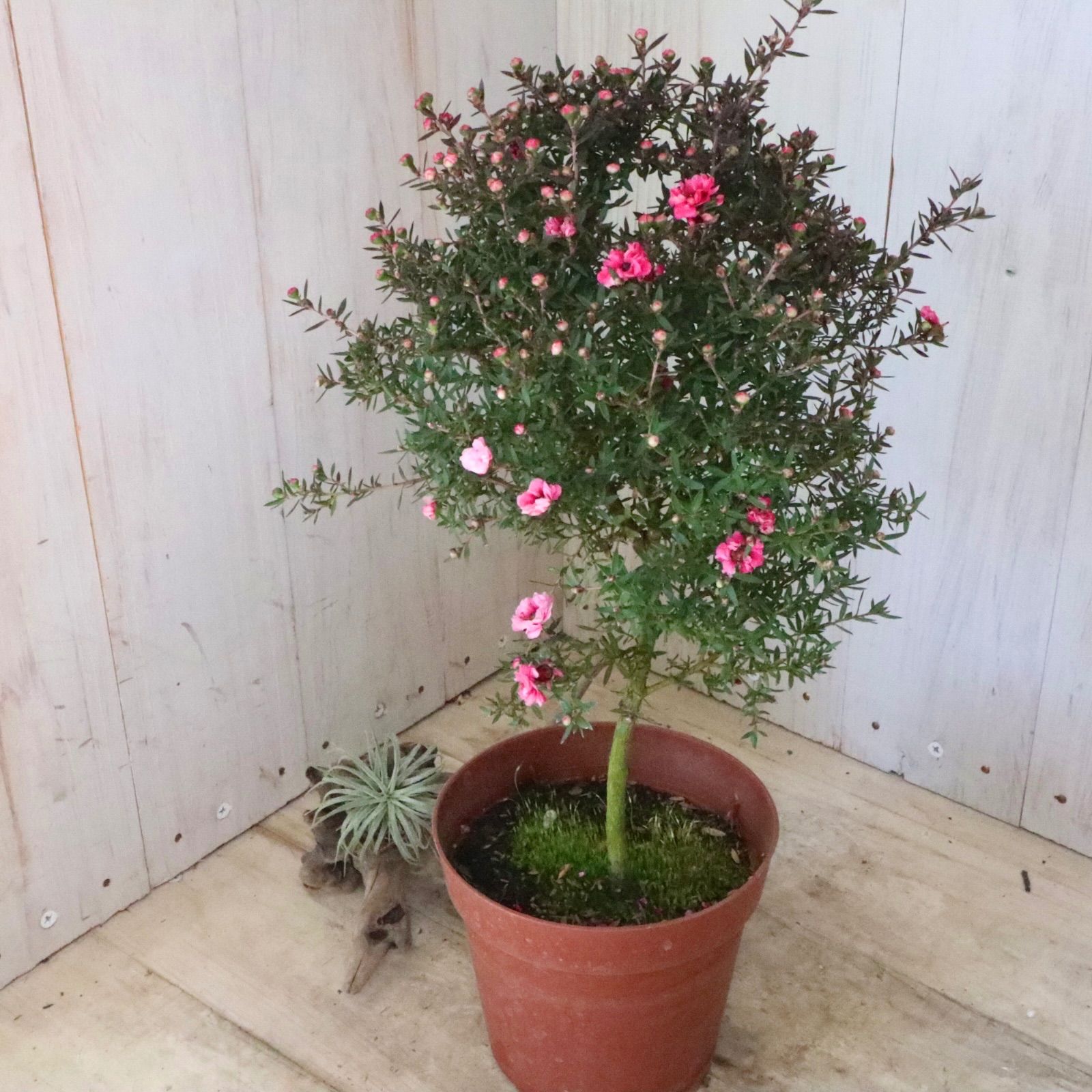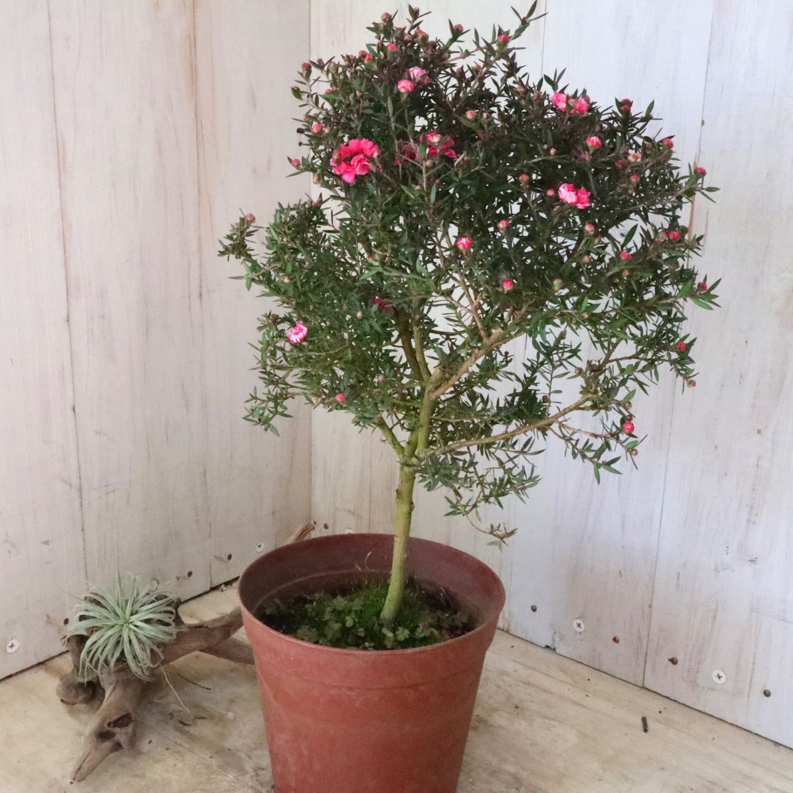 ◆◇ 八重咲きギョリュウバイ 濃いピンクです。 豪華な八重咲きになります。 ギョリュウバイはニュージーランド原産のティーツリーの仲間です。 梅の花に似た花を冬から春にかけて開花させます。 葉も花もとても小さく、枝も細く、また開花期間が長く丈夫で育てやすいので、冬の寄せ植えにも活躍する魅力的な樹木です。 ※花付きや枝ぶりは個体差がございます。 ※1鉢のお値段です。 ☆置き場所☆ 日当たりがよく、水はけ水もちのよい場所を好みます。 やや暑さに弱いので、鉢植えの場合は夏に半日陰に移動したほうがよいです。 ☆水やり☆ 乾燥と過湿を嫌います。 葉っぱが硬く、乾燥しているのかどうかわかりづらいので、水切れには特に注意が必要です。 鉢植えは、土の表面が乾いたことを確認してから水やりをします。 ☆全体の大きさ☆ 4寸鉢 ☆発送☆ 第4種郵便 事故補償、配達日時の指定がございませんのでご了承ください。 ※プラス500円でゆうパックに変更できます。
