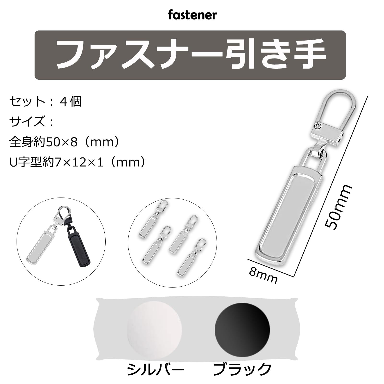 【説明】このファスナー引き手は穴径が2mm以上のファスナーヘッドに取り付けることができます。2mm未満の場合は、引手を入れない可能性があります。ファスナーは4個セット、長さ50mm(1.96インチ)、幅0.8mm(0.31インチ)です。コールド、シルバー二つのカラーがあります。シンプルなデザインが日常の交換ニーズをサポートします。