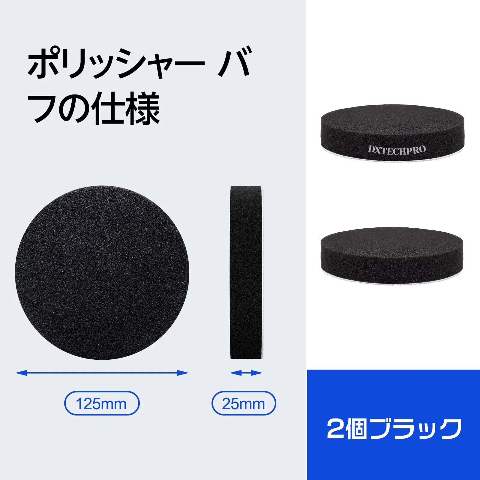 【ポリッシャー バフの仕様】内容量:2個セットポリッシャー バフ 125mm;サイズ:直径125mm、厚み25mm。洗車やワックスがけ、コンパウンド、研磨、ワックスがけなどに使えます。