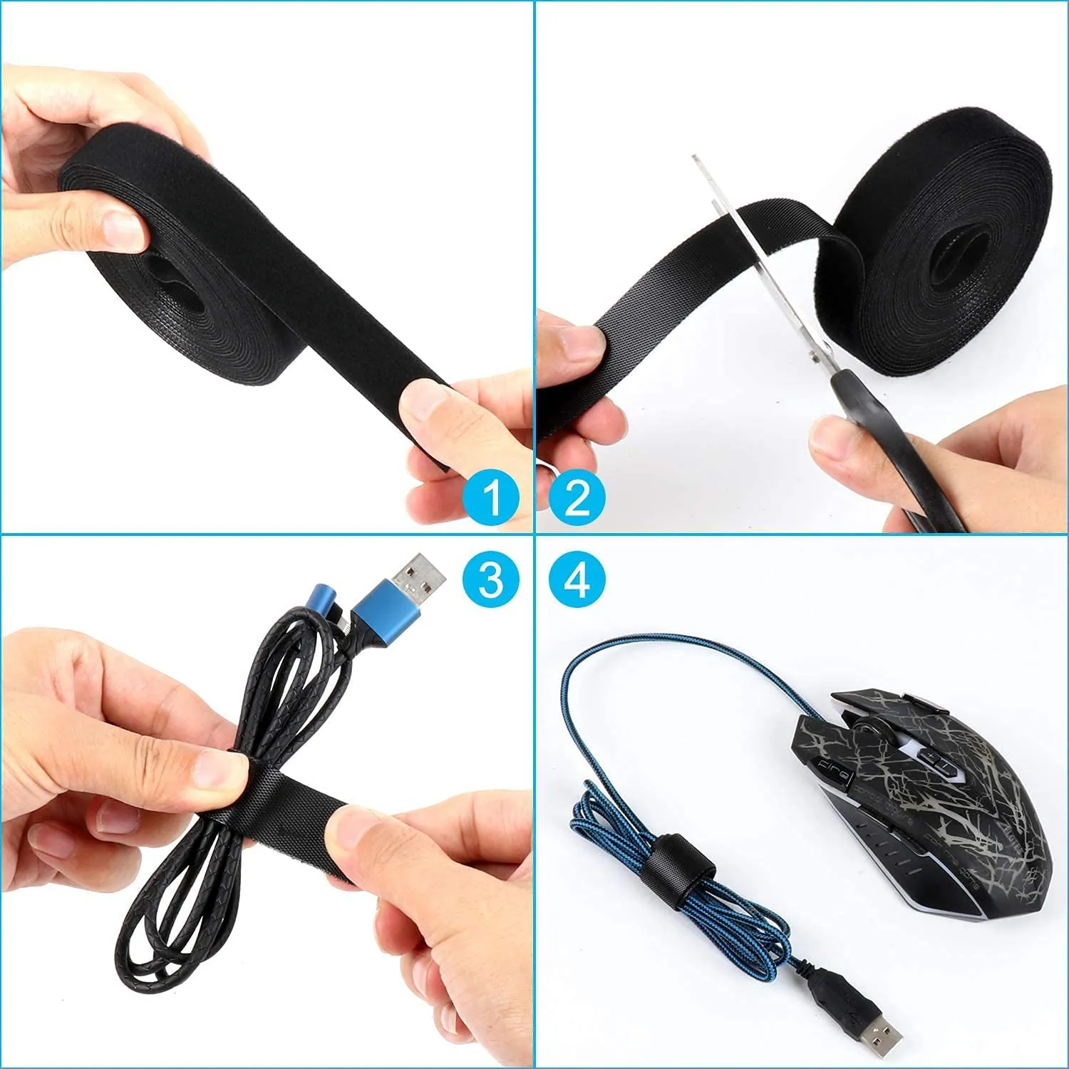 【使用便利】結束バンドはケーブルのサイズに合わせてハサミで簡単にカットして使用できます。強力面ファスナー フック状に起毛された側と、ループ状に密集して起毛された側が背中合わせになった面ファスナー式結束バンドです。パソコンケーブル、ノートPCアダプタ、電気コード、USBケーブル、イヤホンなどの配線まとめにご利用いただくのはもちろん、カーテンや竹マット、釣り竿の整理にも意外に大活躍できます。