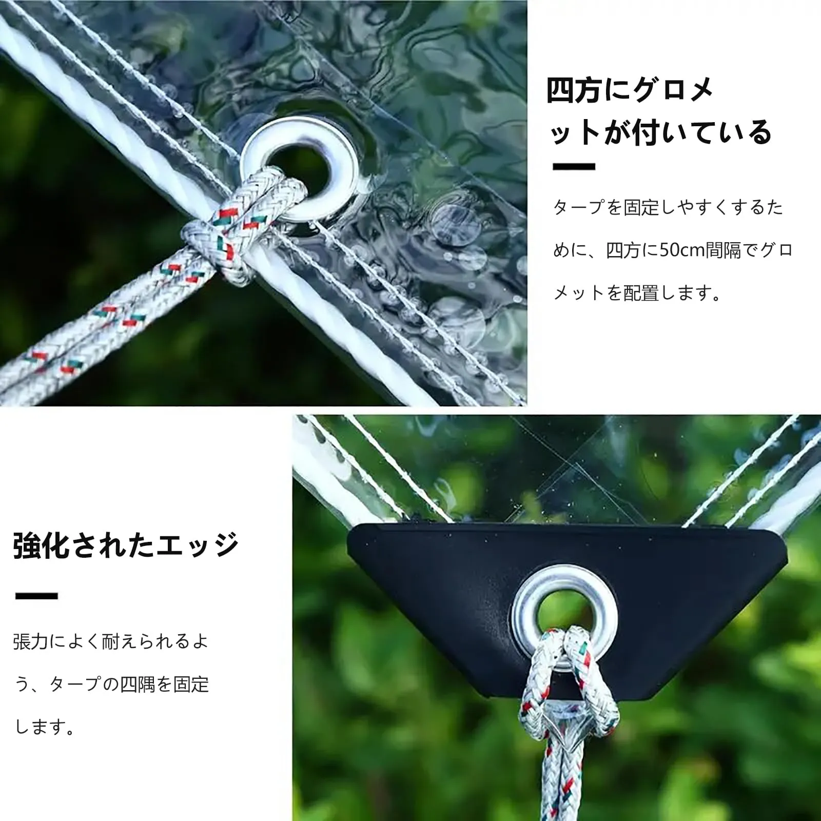 【アドバンテージ】:100%防水、防塵、防風、厚みのある一体型ロープにより、防水シートをより美しく耐久性のあるものにします。四角い一体型のゴム製の三角形の袖は、防水シートの周りに強いです。防水シートの圧力が分散され、アルミニウム合金のグロメットが拡大され、周囲の穴がエンコードされます。引張り、ポリエステル糸の縫い目とエッジ、正確なガイダンス、丈夫で耐久性。