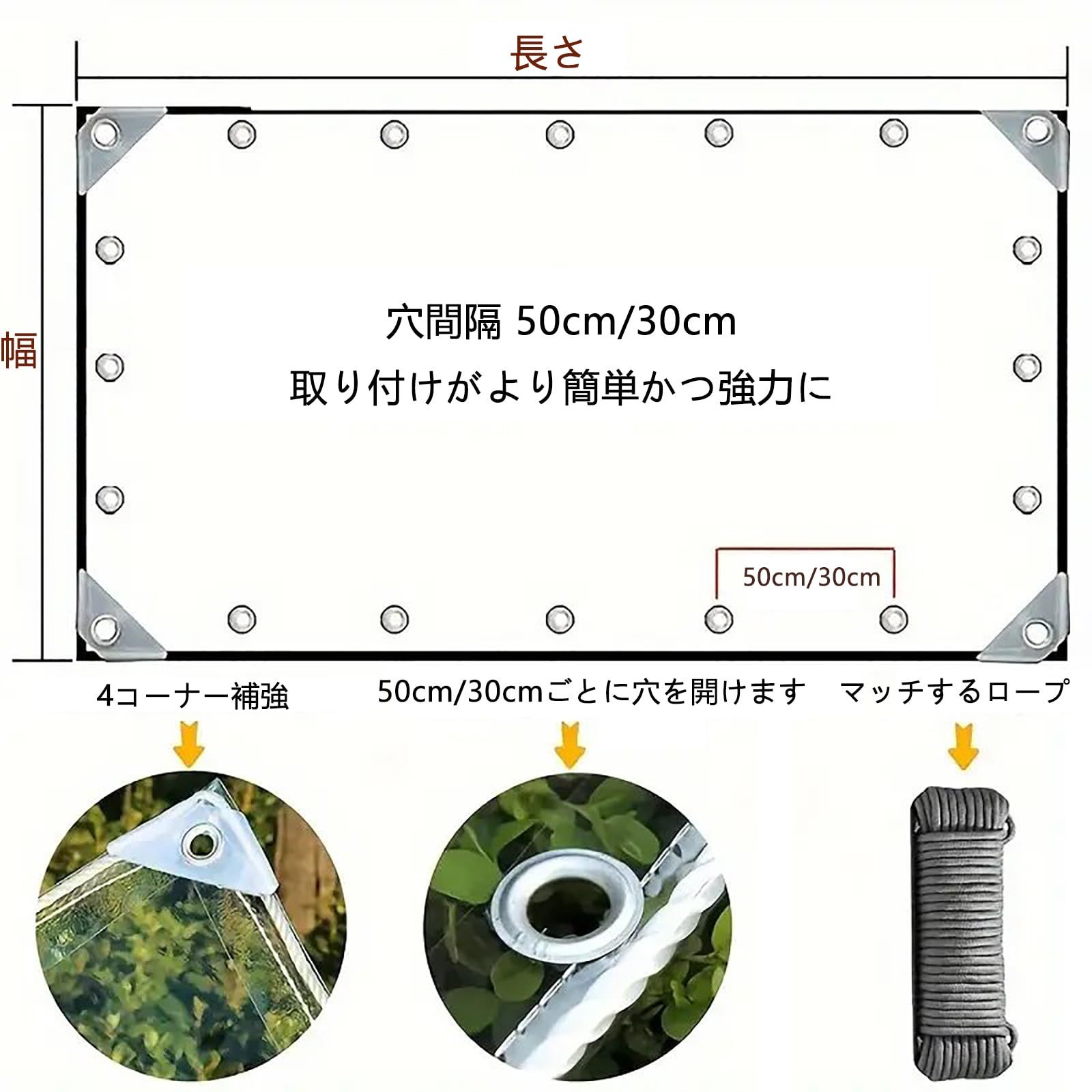 【頑丈で耐久性があります】:高品質のPVC素材、カーテンの周囲に強化処理が施されており、破れにくく、裂けにくく、鋭利なものに接触しても傷がつきません。縁にナイロンコードが追加され、2つの金属穴の差は約30cm/50cmで、吊り下げや取り外しが簡単です。厚さ0.5mm、柔らかい質感、折りたたみ可能、保管や持ち運びに最適です。