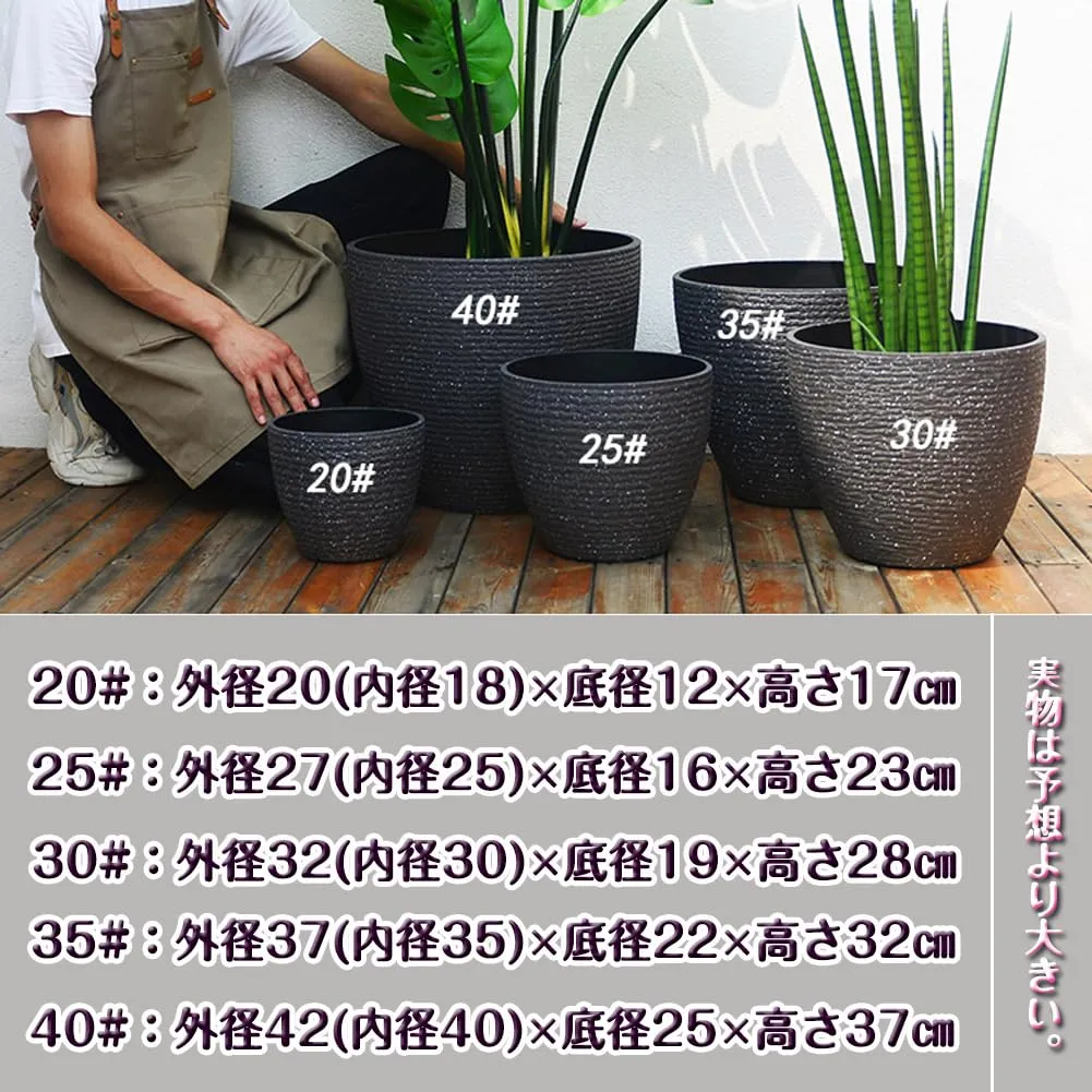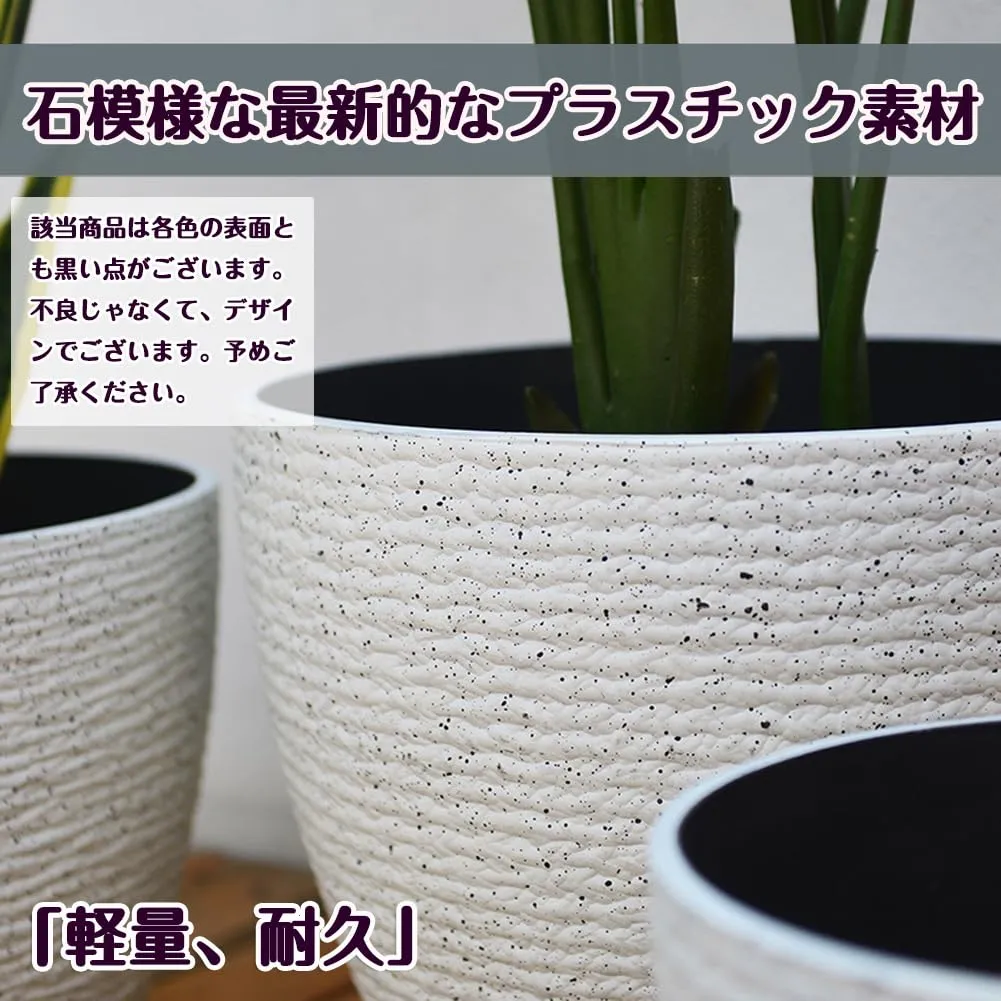軽量で持ち運びが簡単:プラスチック素材を使用しているため、花盆は軽量であり、移動や配置の変更が容易です。重たい石製の花盆と比較して、便利な使い勝手があります。